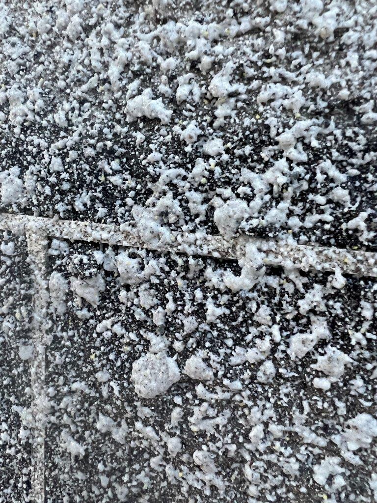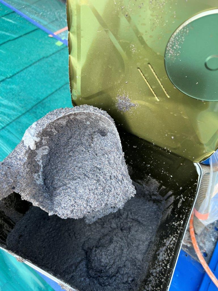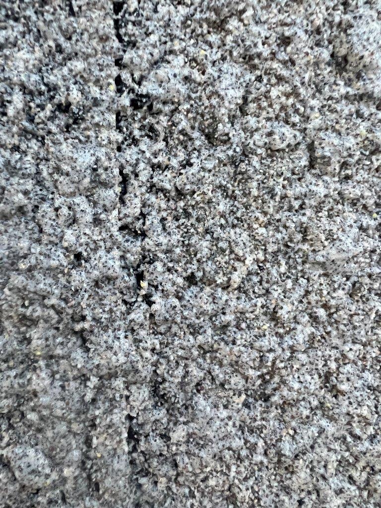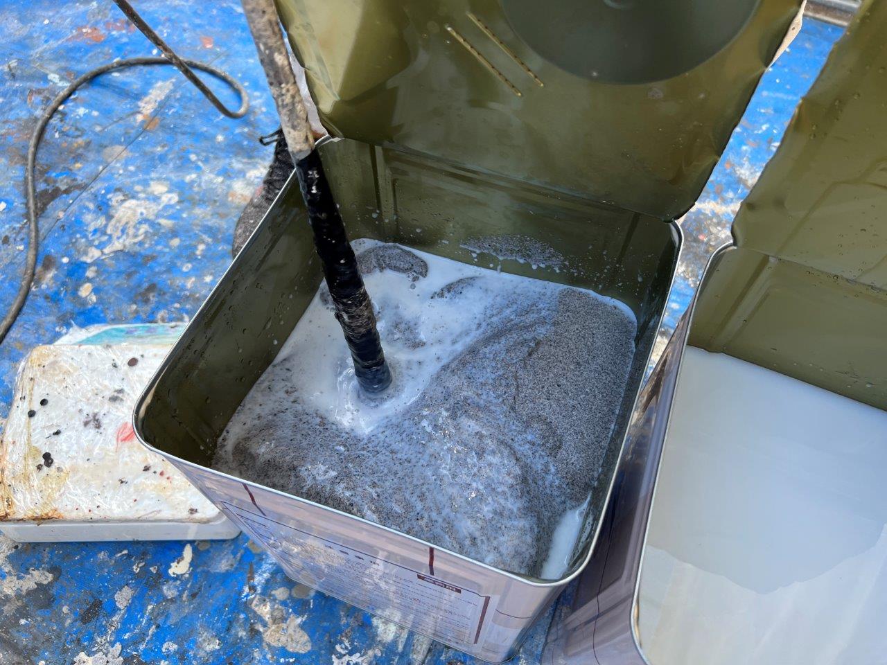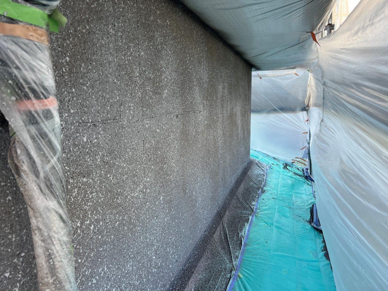 目地テープの剝がすタイミングも早過ぎてだめですし、遅すぎてもだめなので見計らってとります。早すぎると目地の回りについている石彫が剝がれたりします。遅いと目地テープの上についている石彫塗料が固まってしまい、取れななります。塗装は塗るだけではなくおういった下準備等の作業が多いです。乾燥後にはフッ素クリアー塗装して石彫をコーティングします。