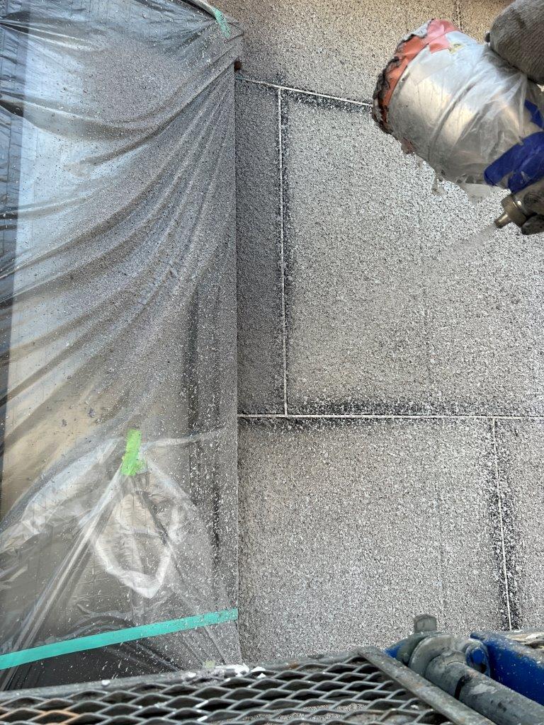 熊本県宇土市O様邸外壁塗装,石彫塗料の吹き付け塗装をおこないました。