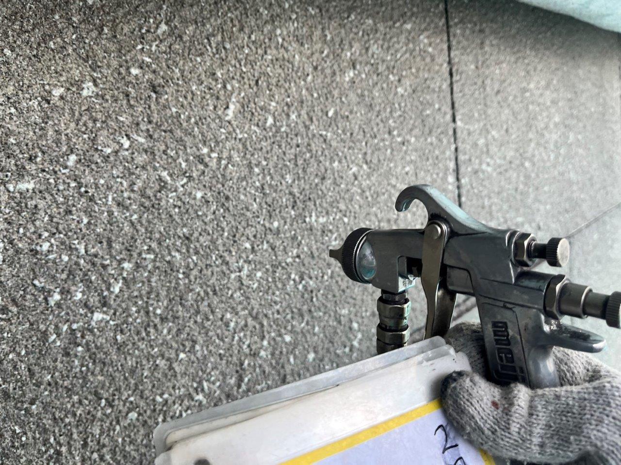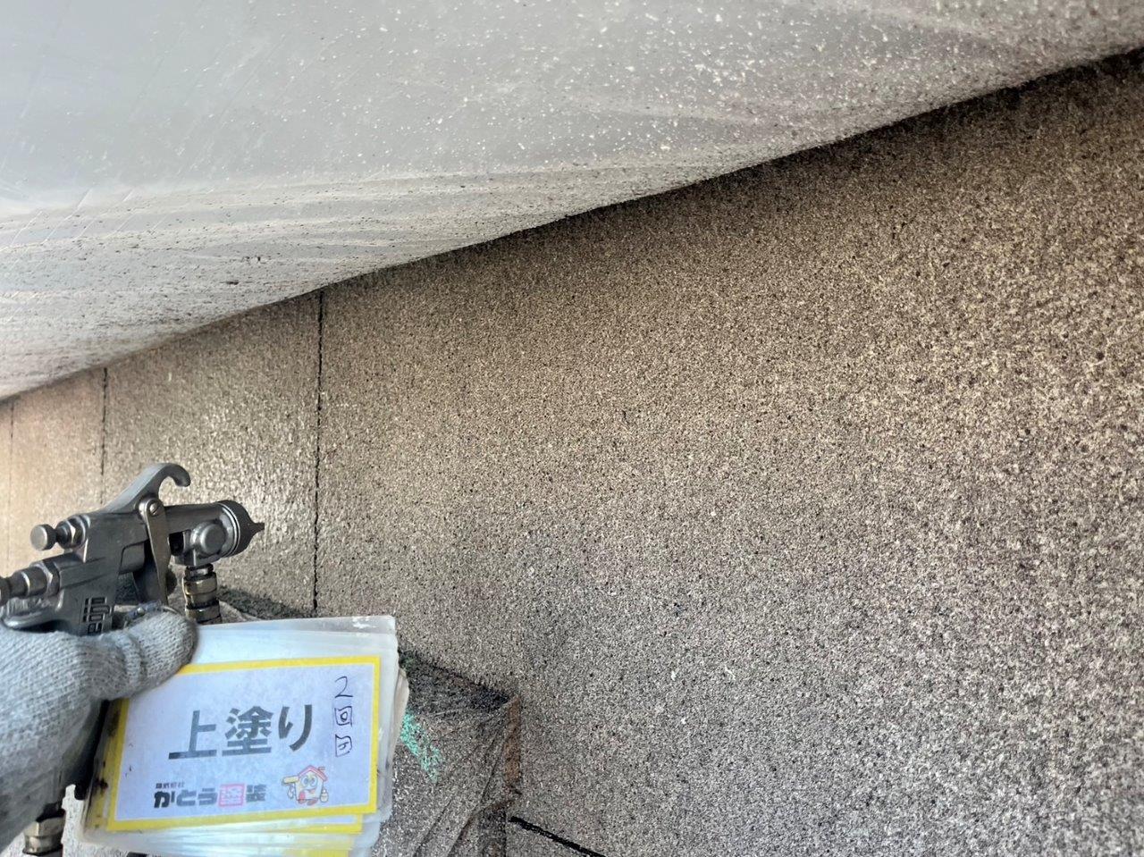 blog 熊本県宇土市O様邸外壁塗装,UVカットクリアー吹き付け塗装をおこないました。 現場情報 外壁の塗料になります。航空機では採用されている塗料になります。 石彫吹き付けのあとですので、ローラーで塗るとムラになりやすいので吹き付け塗装をします。クリアーを石の風合いを損なはないように3分艶で塗装しています。 建物の半分は先日に吹き付けたので、残りをおこないます。 バルコニーの中 上塗りの塗装2回目になります。(クリアー塗装2回目) 0120-659-976 [受付]8:00~20:00 [定休]元日のみ メールでお問い合わせ 前の記事 次の記事 一覧へ戻る