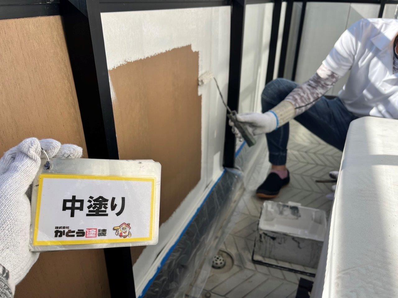 シャッターボックスの塗装状況です。フッ素4FⅡで塗装しております。
