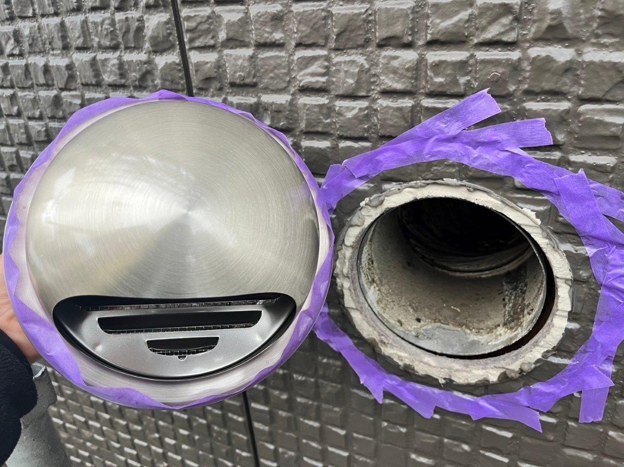 フードを新品にとりかえました。理由としては網が入っていないのでミツバチが隙間から入ってくると施主様がおしゃっていたのでステンレス製の網が入っているものと交換しました。