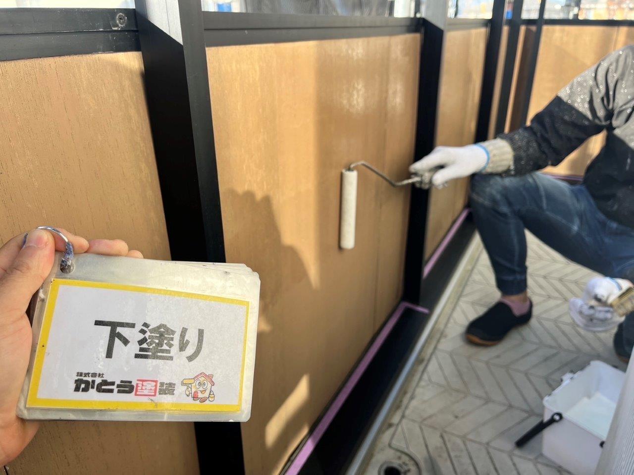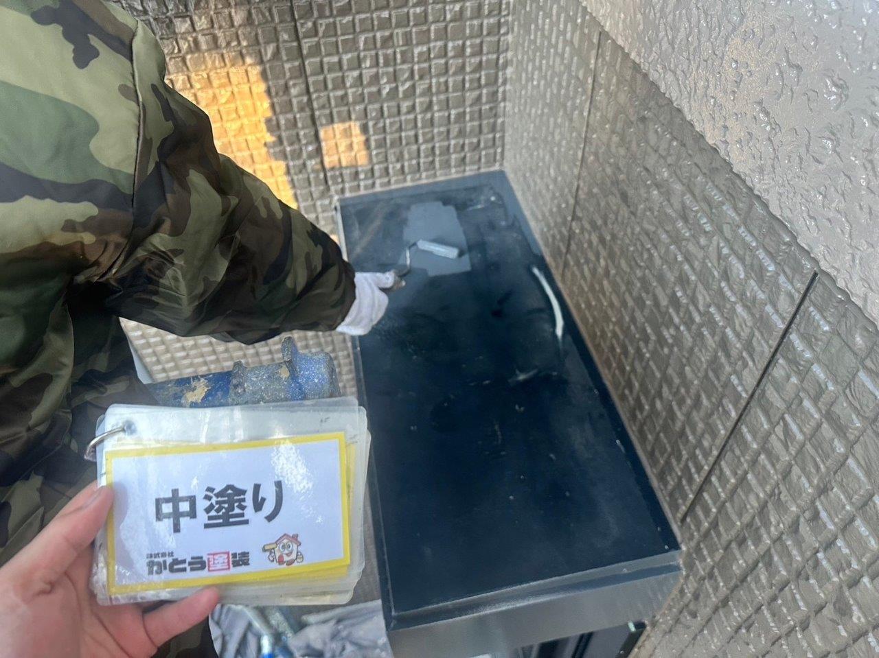 シャッターボックスの塗装状況です。フッ素4FⅡで塗装しております。