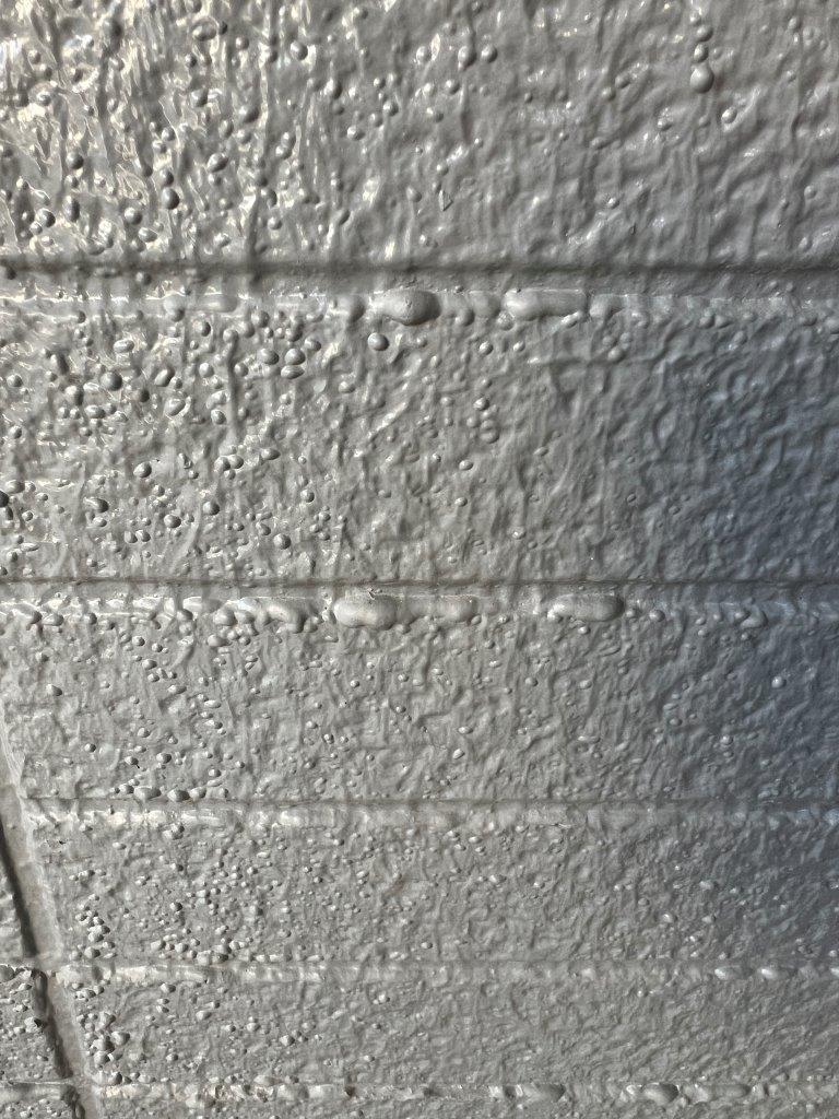 サイディングに弾性塗料が使用されています。シーリングの打ち替えもおこなっていません、こんなことをしたら熱ぶくれします。所々に膨れている箇所がありました、失敗したからならこの塗膜を全部はぐってことはもうできないのでこの上に塗り重ねるしかありません。塗装工事は失敗したら取替えしがつかないのです。
