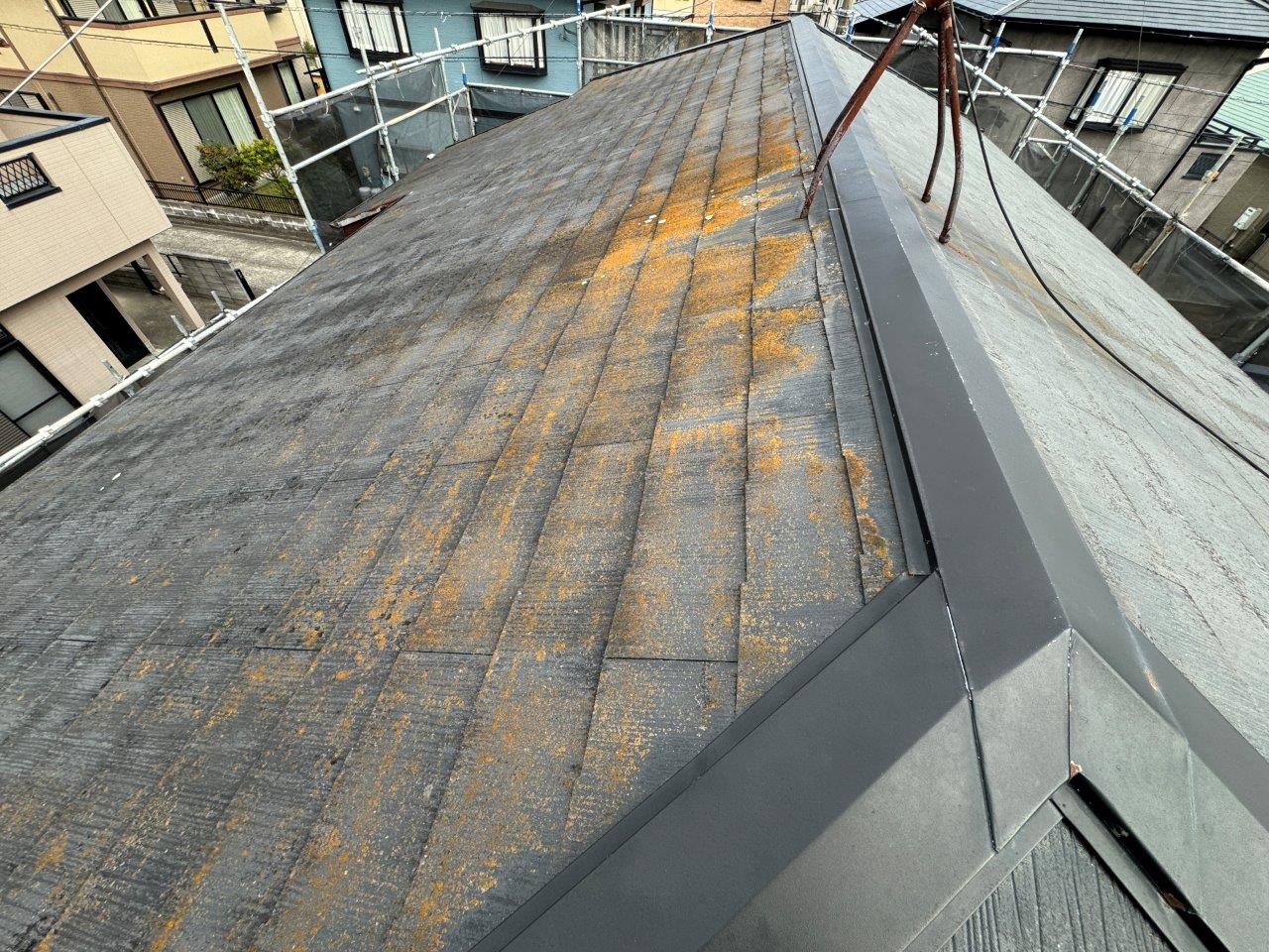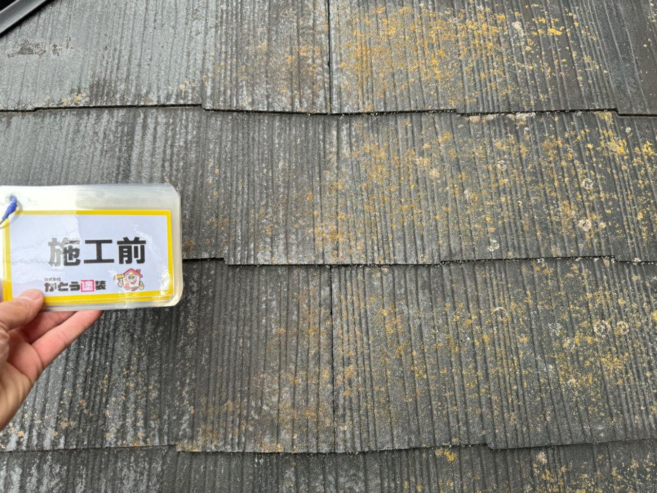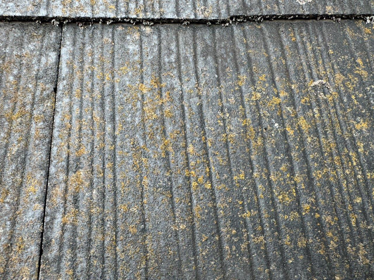 お屋根の施工前のお写真です。コケや藻が発生しています。