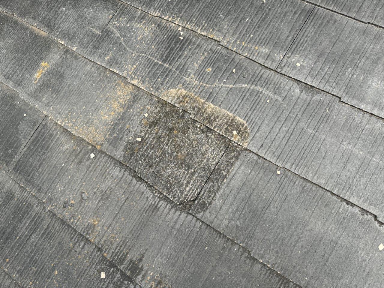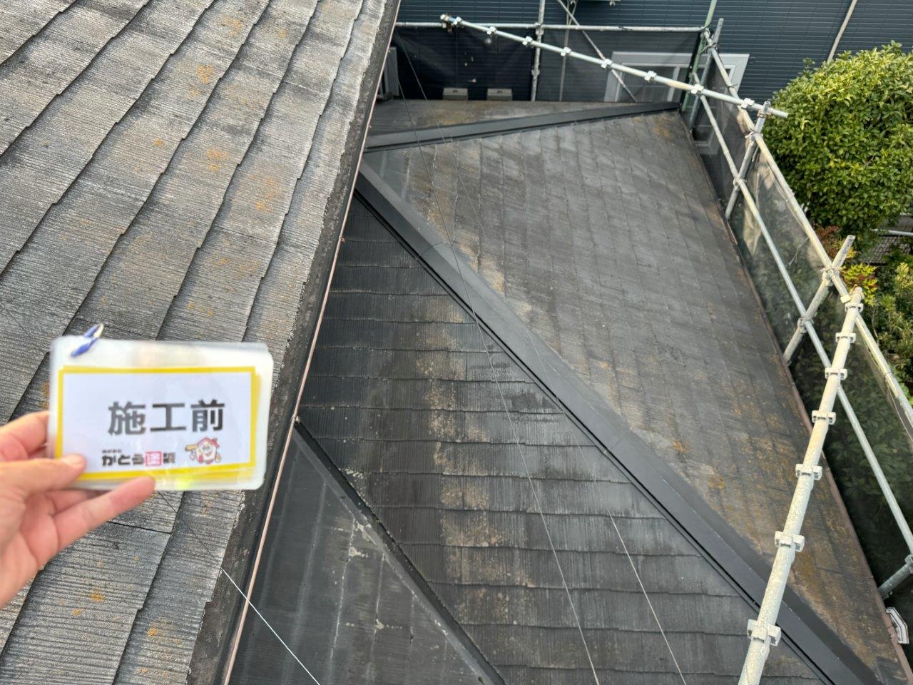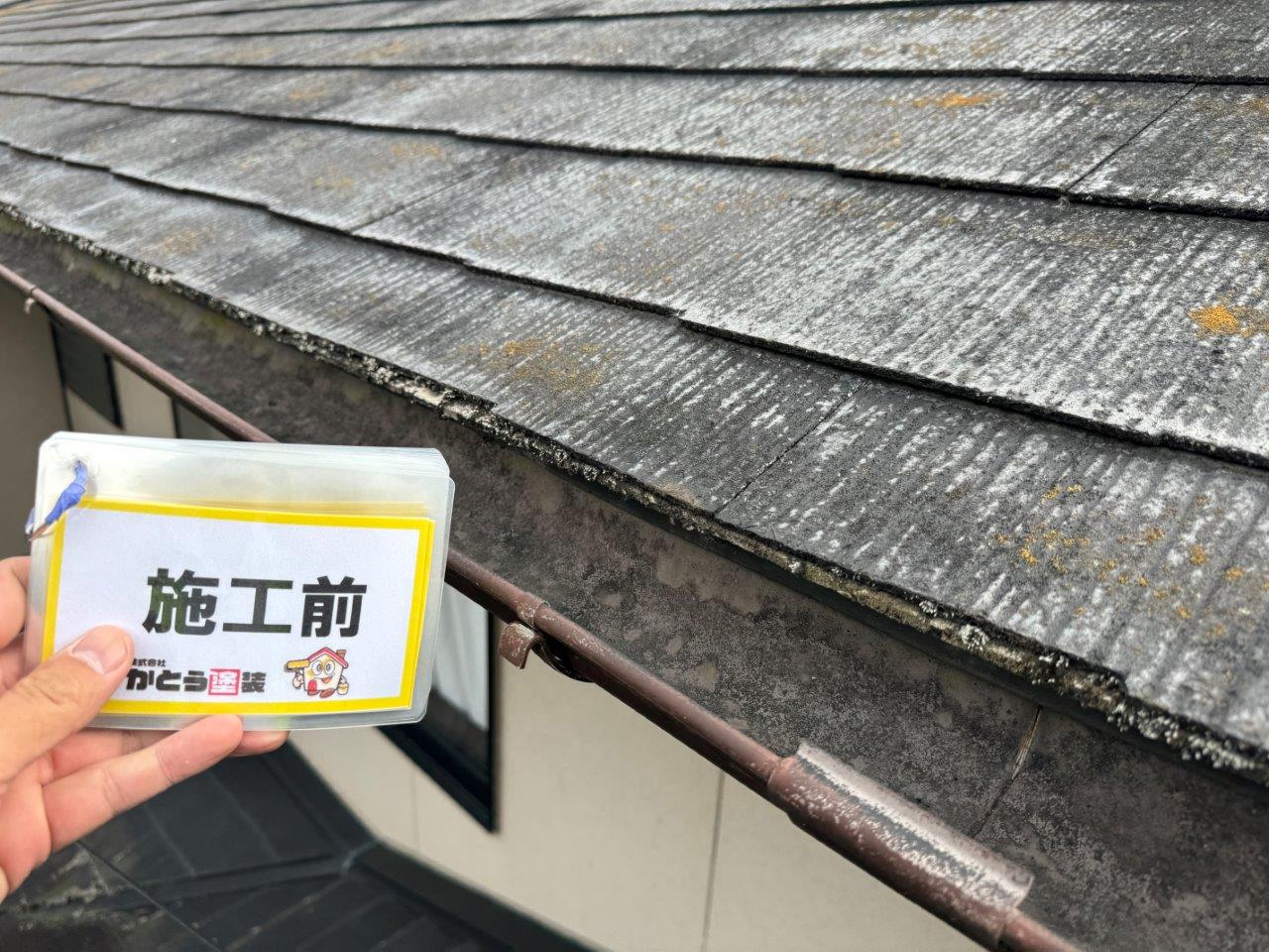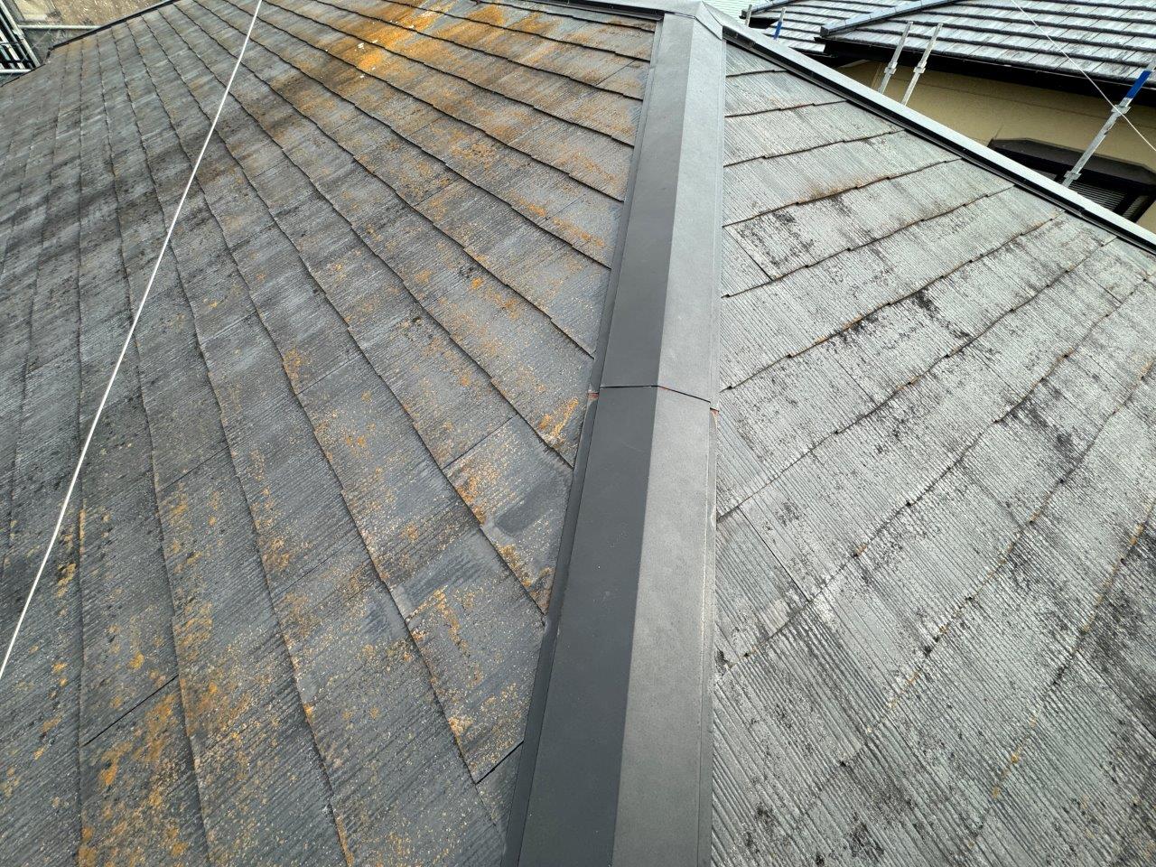 お屋根の施工前のお写真です。コケや藻が発生しています。