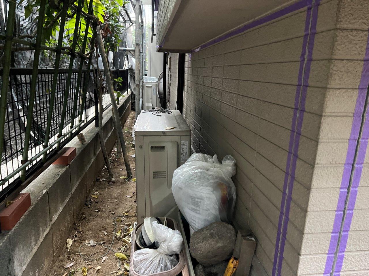 室外機のホースがそのままの状態です。根本から切れば綺麗になったとおもうんですが、、面倒だったんですかね