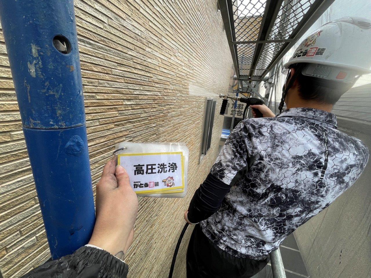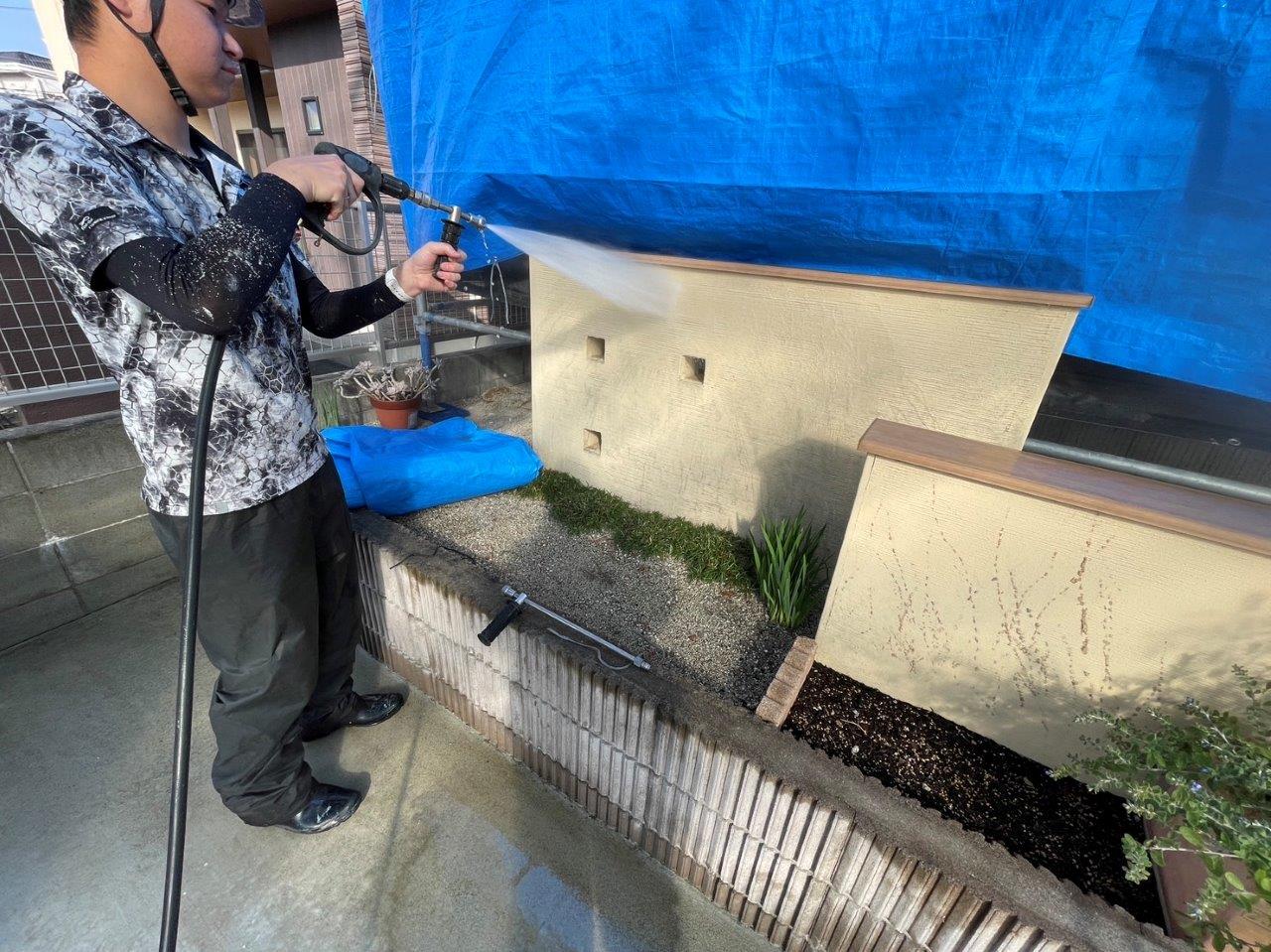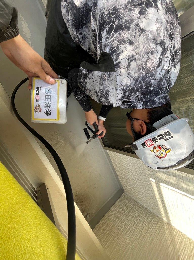 熊本市北区清水F様邸外壁塗装,高圧洗浄をして下地を綺麗にしました。