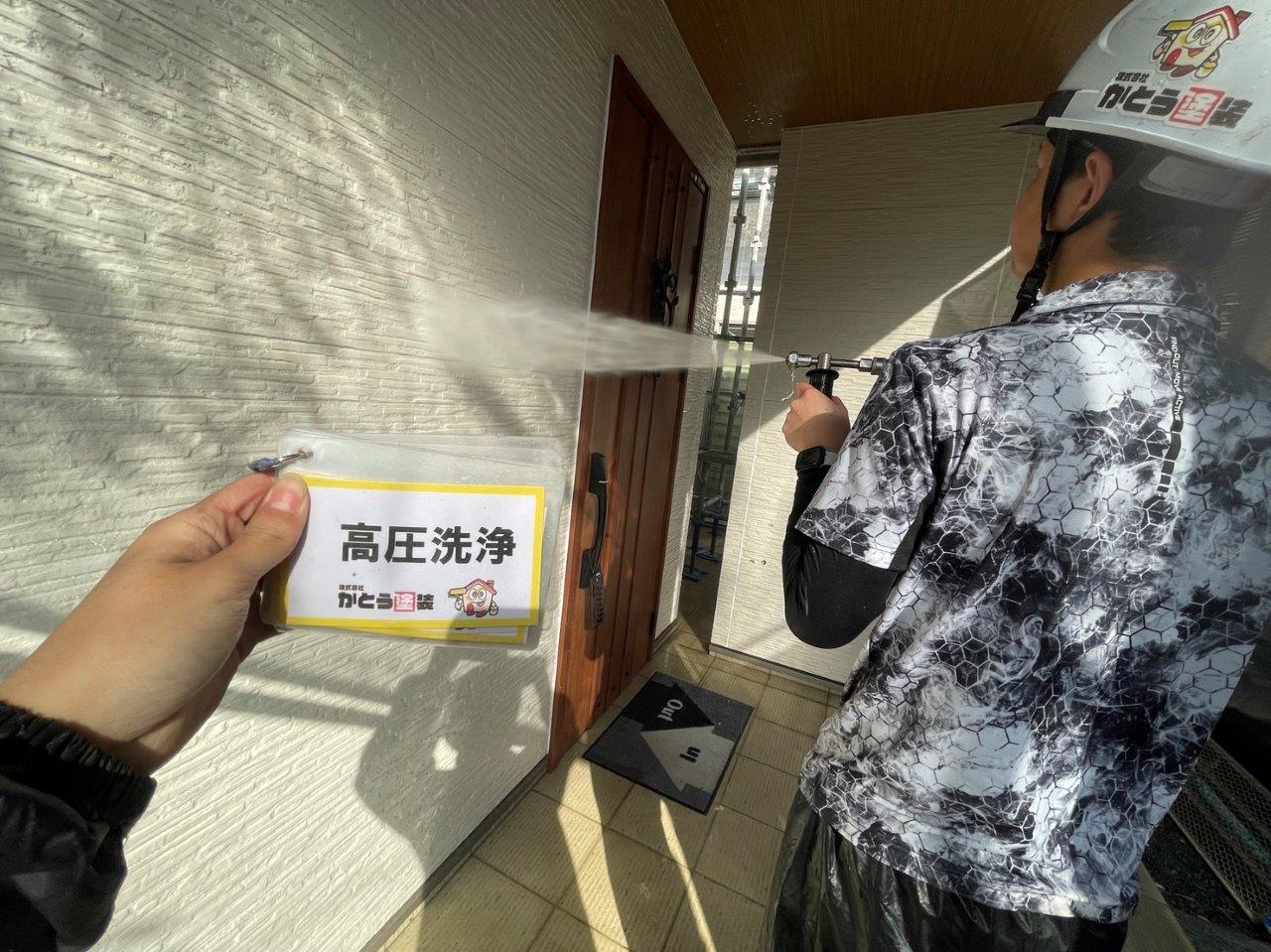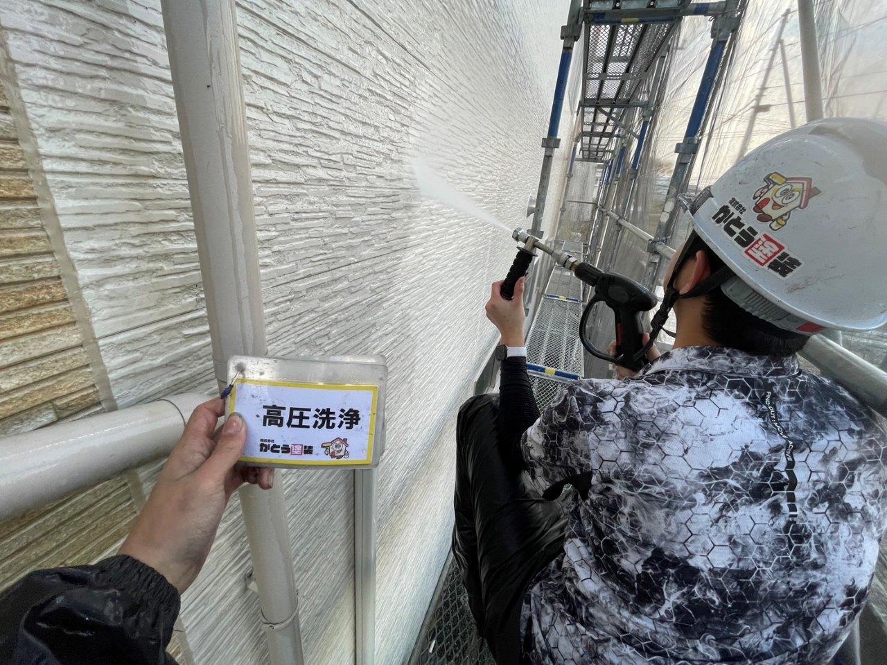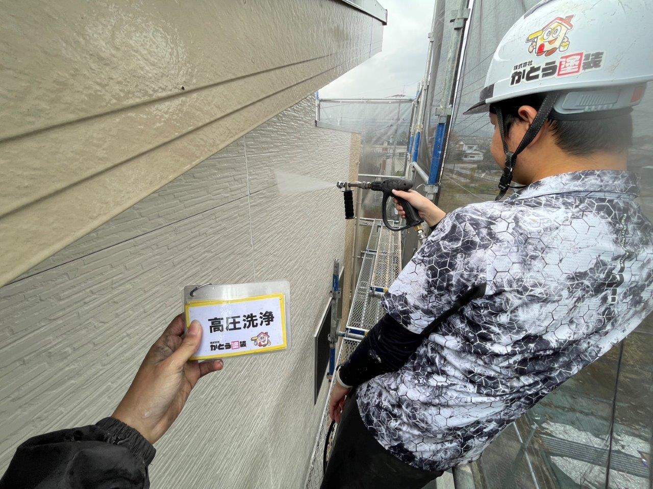 熊本市北区清水F様邸外壁塗装,高圧洗浄をして下地を綺麗にしました。