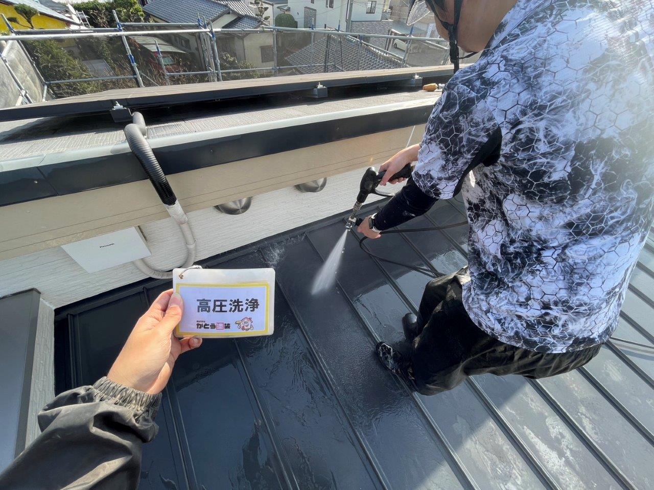 駐車場の屋根の部分も高圧洗浄をしました。
