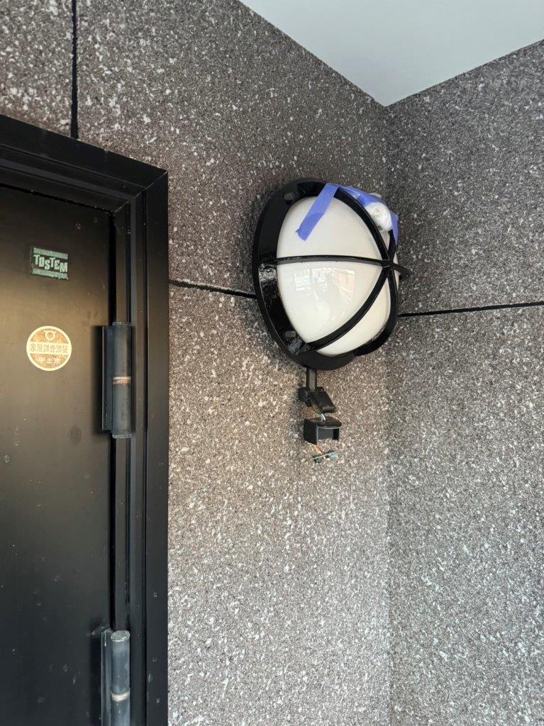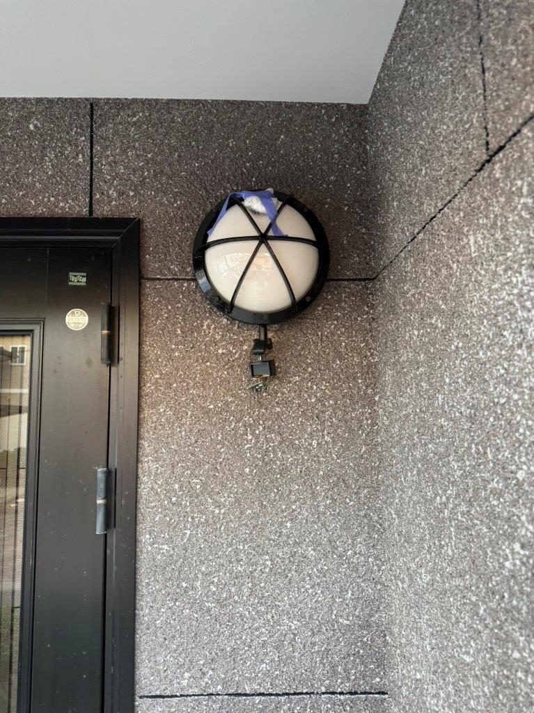 照明の交換をおこないました。養生のテープをはぐさいにセンサー部分のプラスチックが劣化していてそこにガムテープを貼っていたためにこのようになったと思われます。