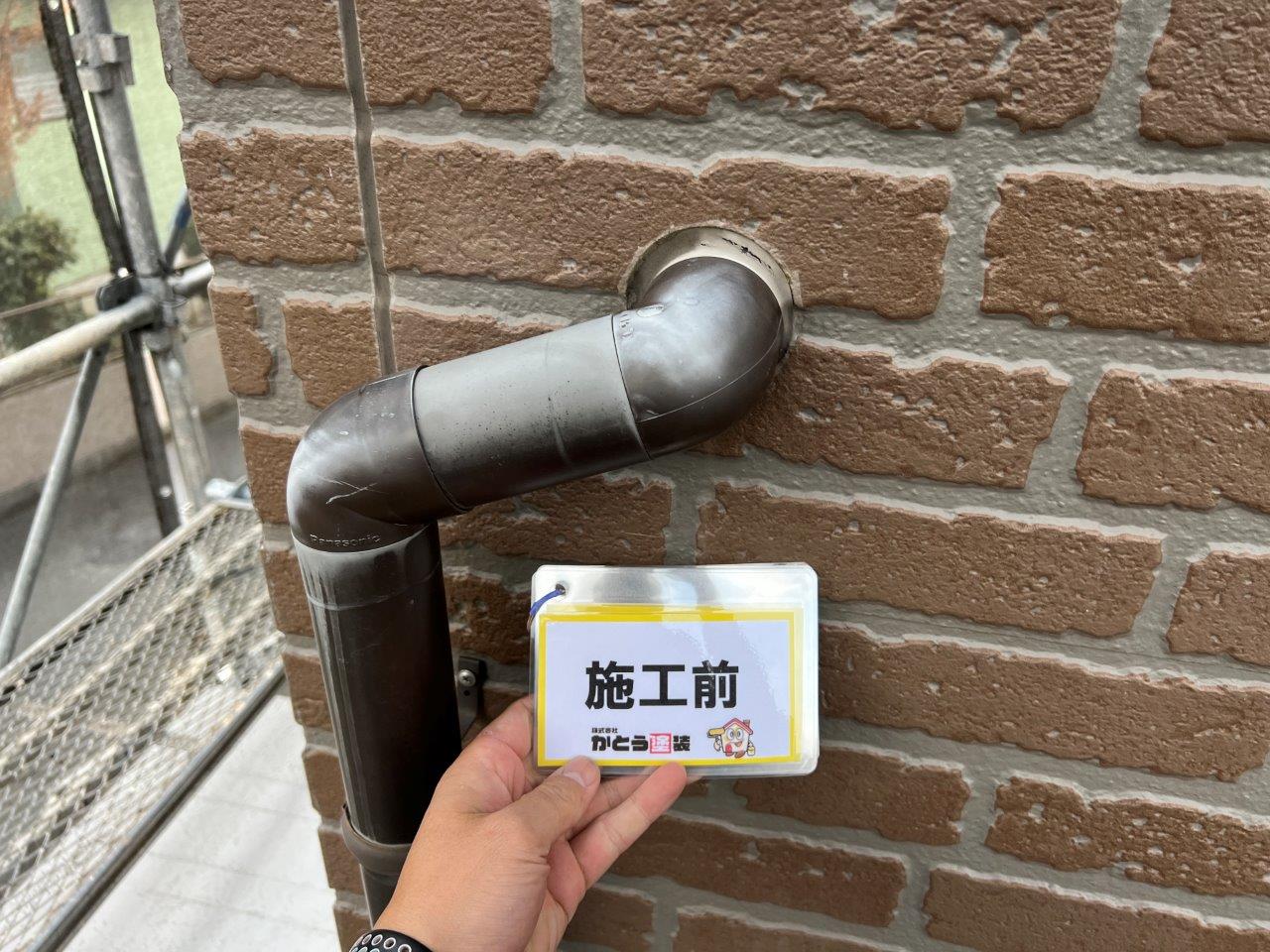 雨どいの施工前のお写真です。褪色しています、劣化が進行するとちょっとあたったったりするだけで割れてしまいます。