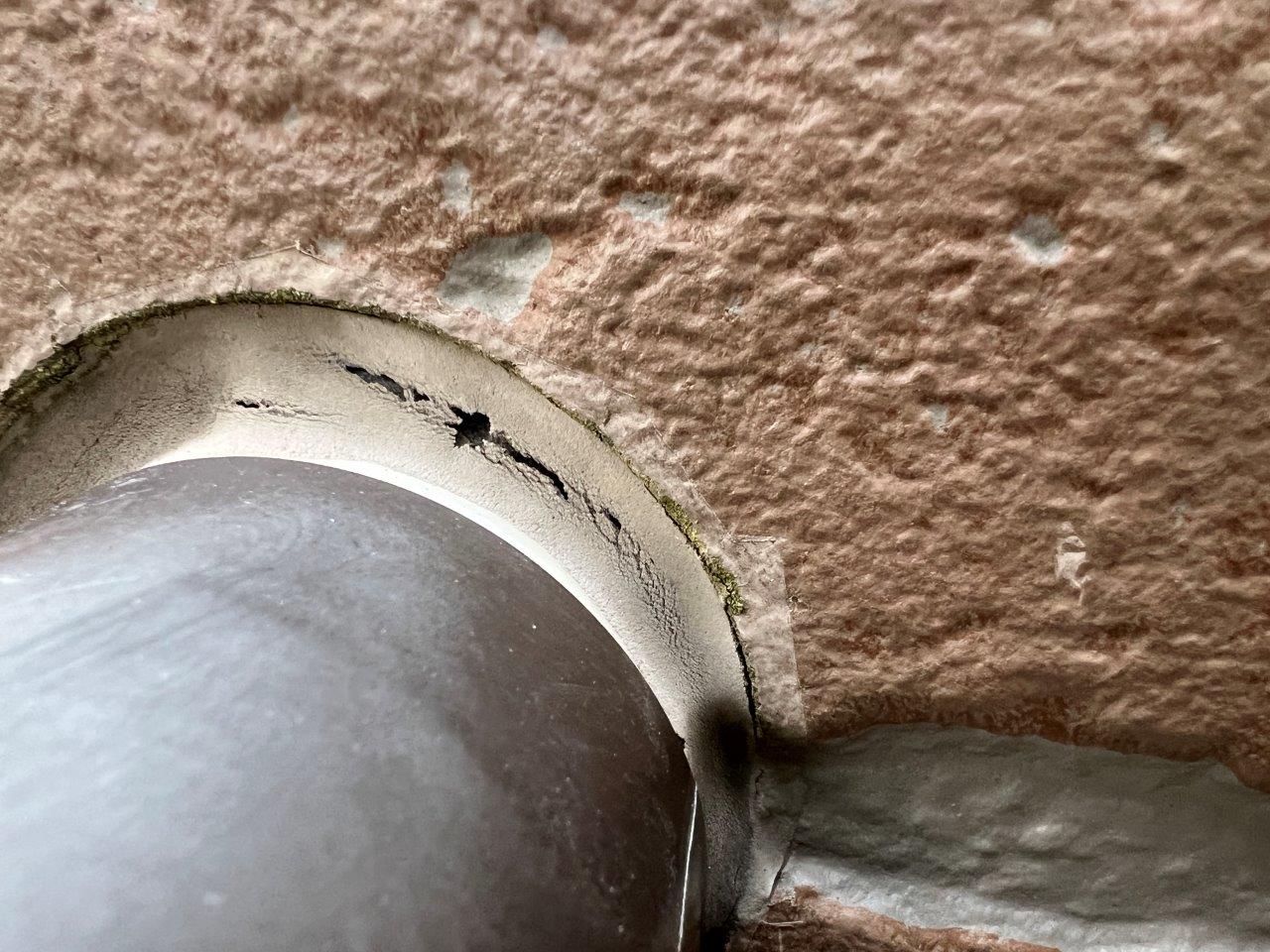 コーキングが一か所破れていてそこから吹き出しているようでした。