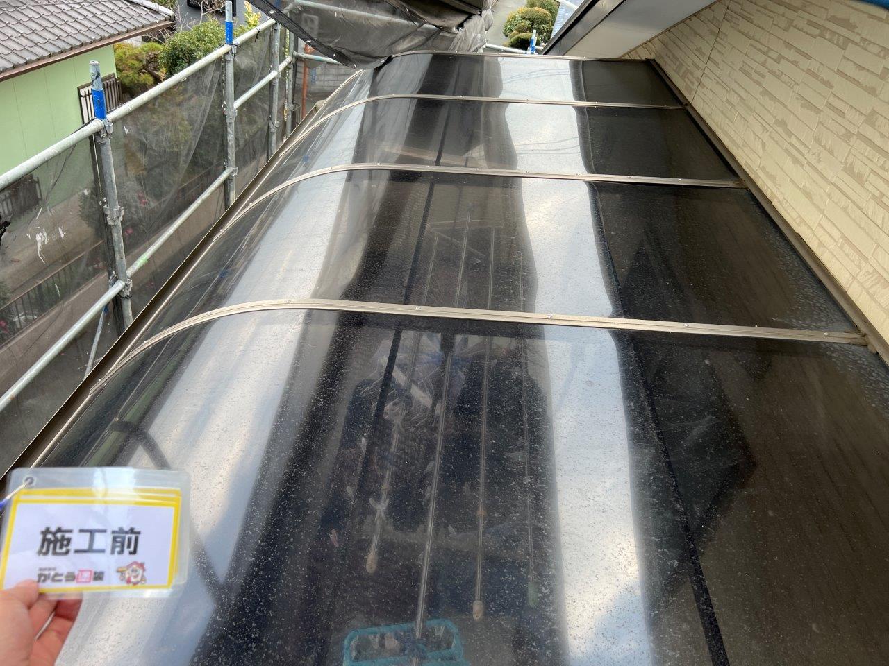 バルコニーのお屋根部分ですが、砂ぼこりや汚れがついております。今回高圧洗浄をして綺麗にします。