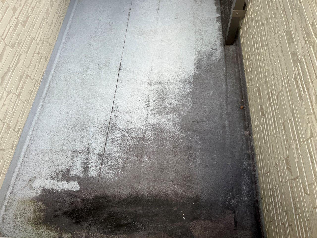 バルコニーの床はこのように汚れています。コケや藻が発生しています。
