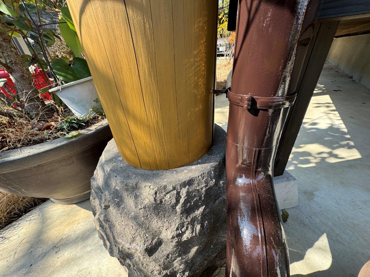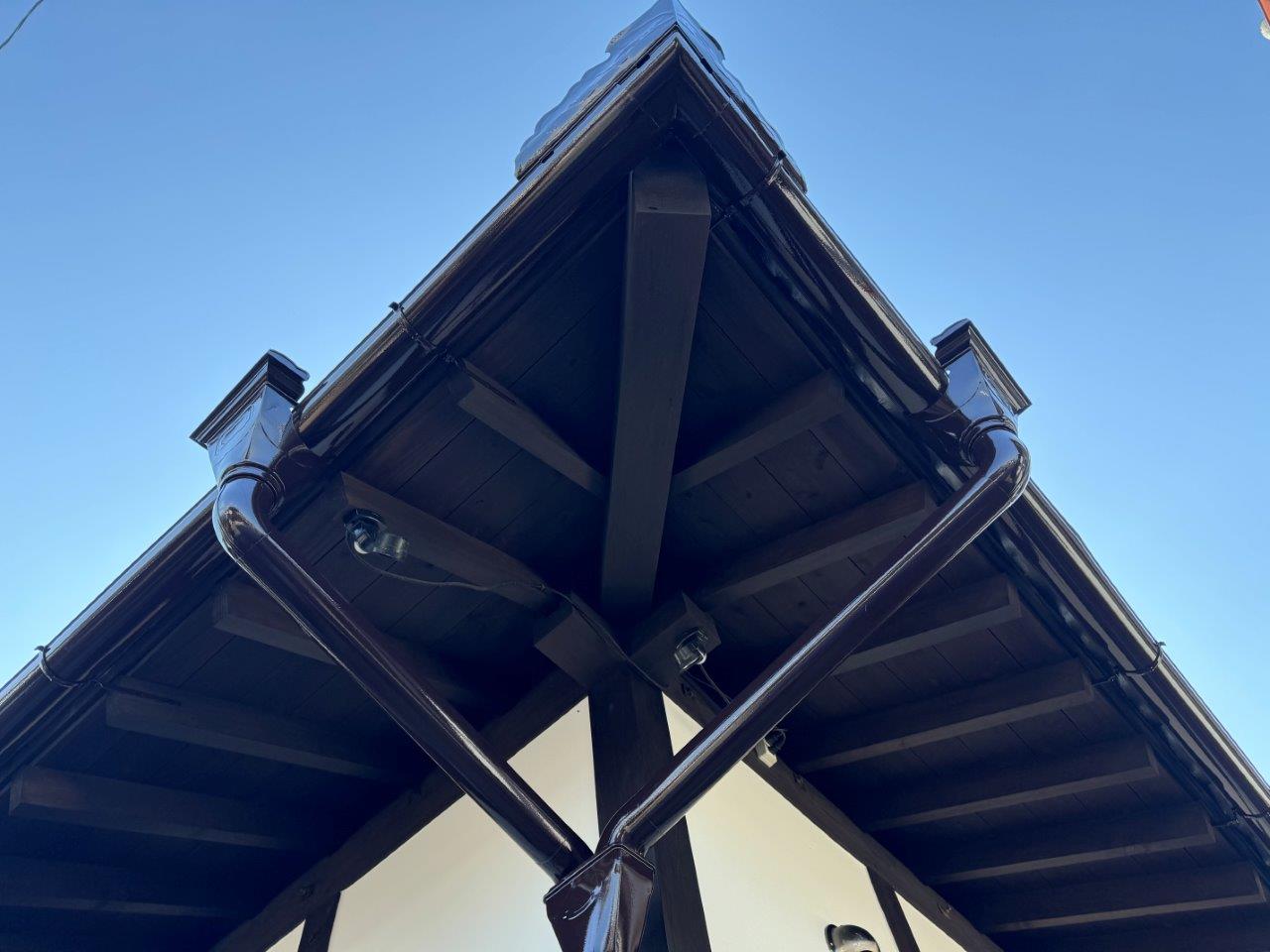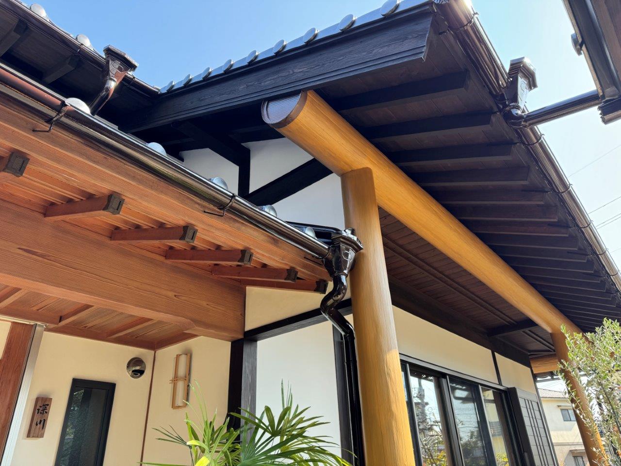 染みも消えております。雨どいはフッ素4Fで施工し、漆喰塗装では艶消し塗料のマットマックスで施工しております。