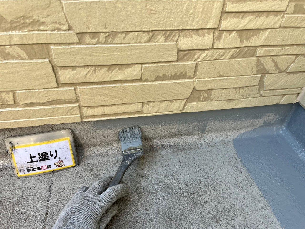 バルコニーの床の防水塗装、上塗り状況です。