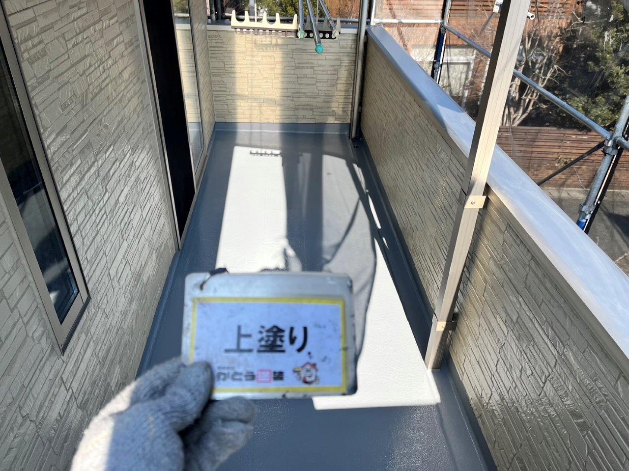 バルコニー上塗りの様子です。