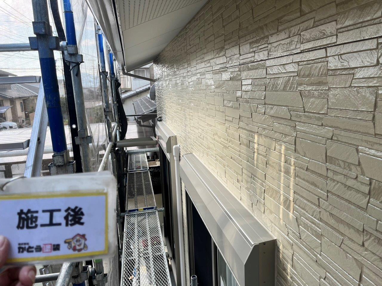 玄関まわりの外壁の塗装完了しました。