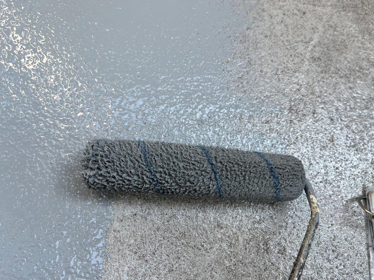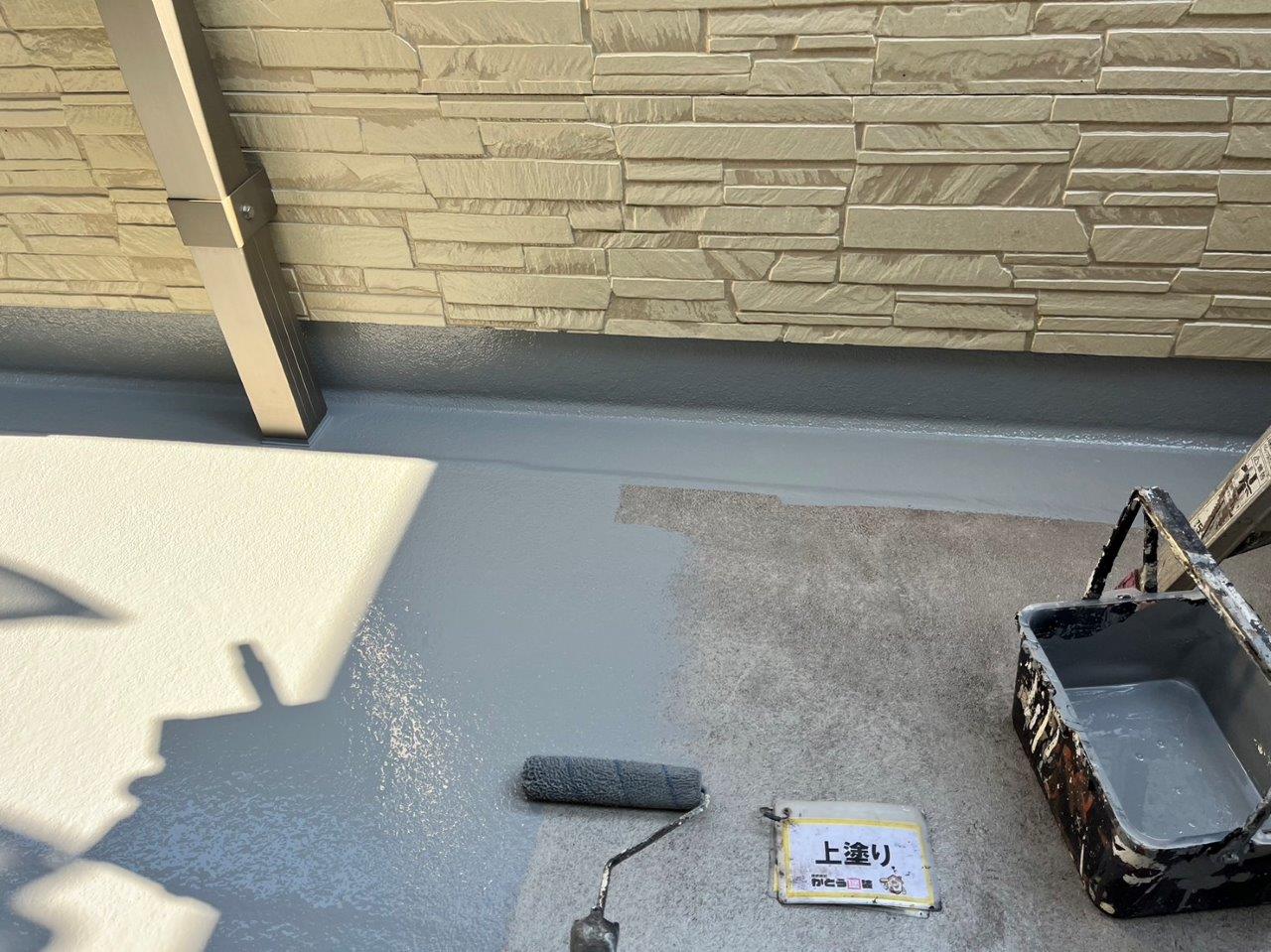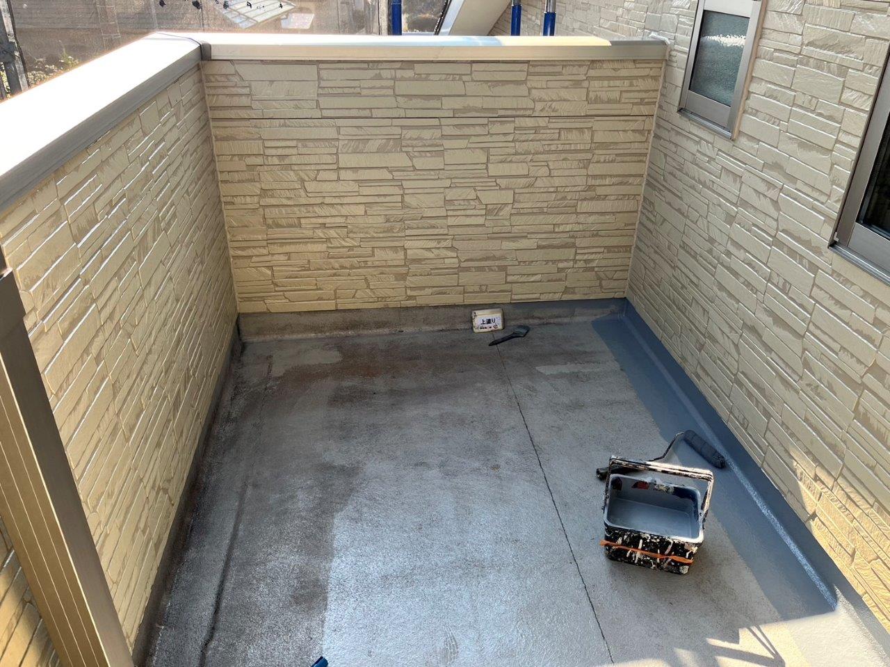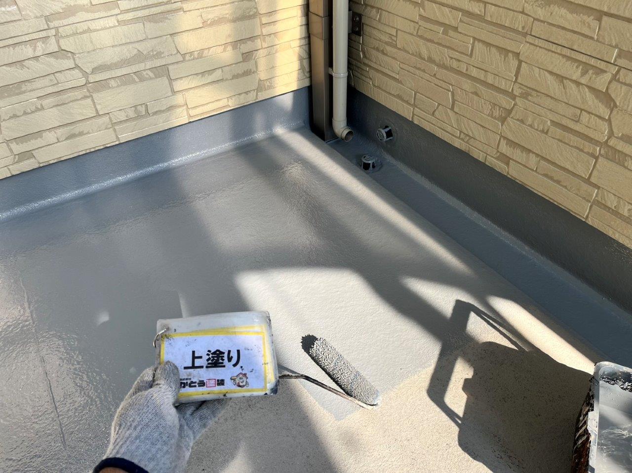 バルコニーの床の防水塗装、上塗り状況です。