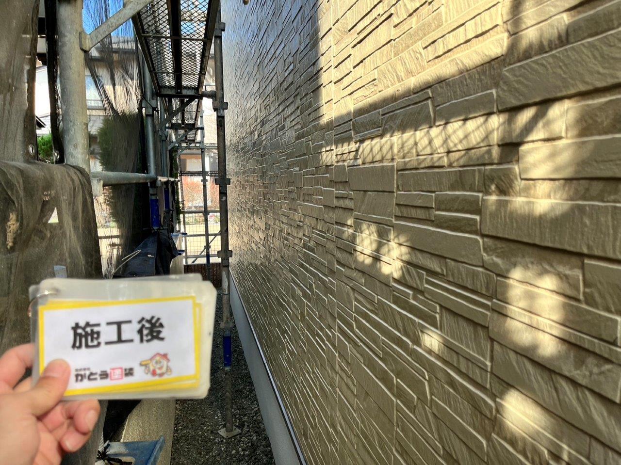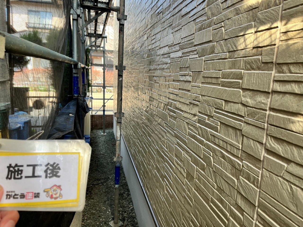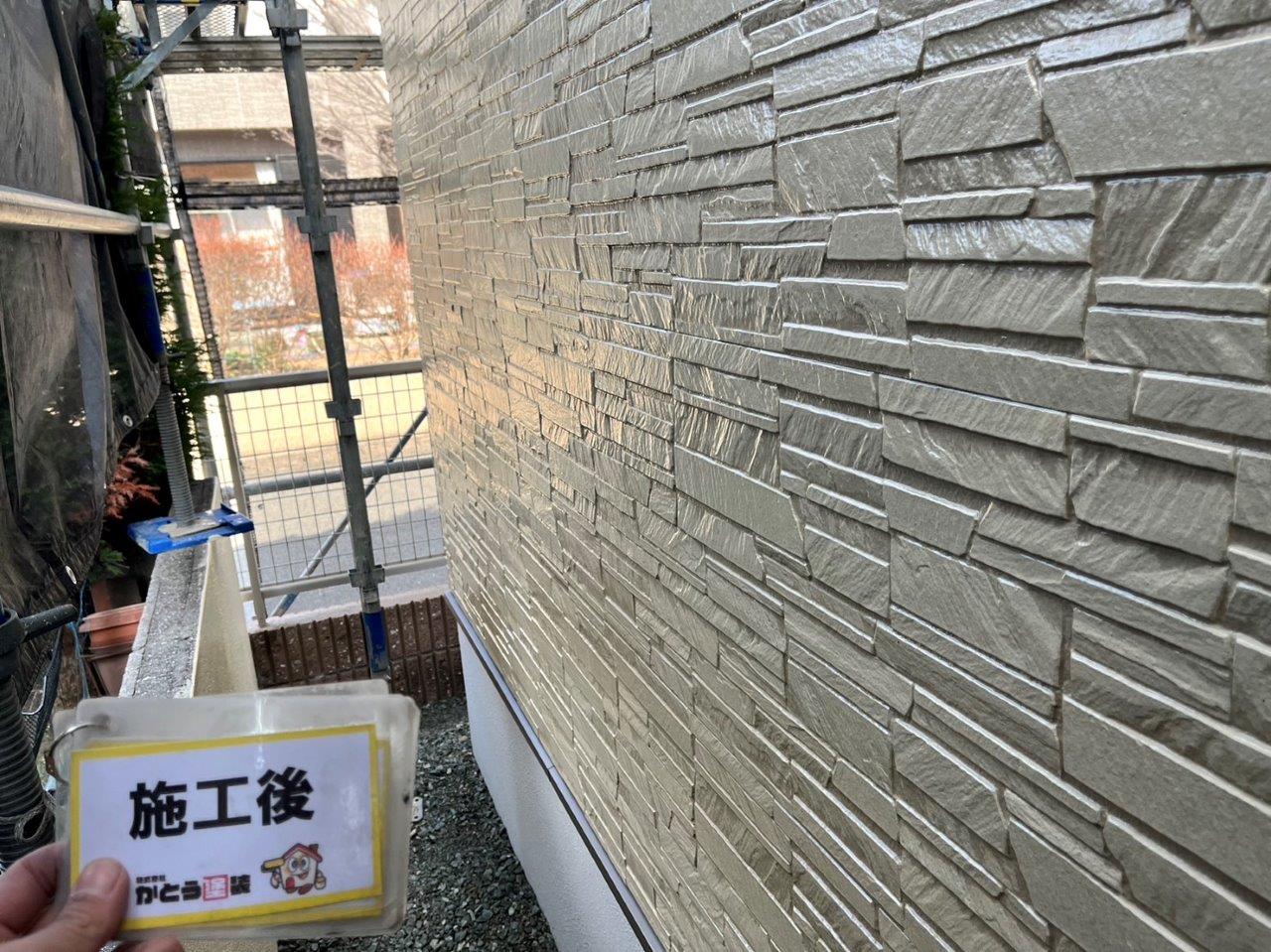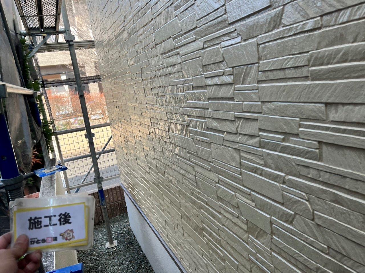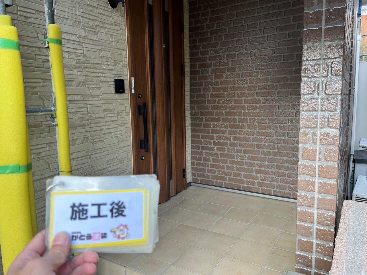 玄関まわりの外壁の塗装完了しました。
