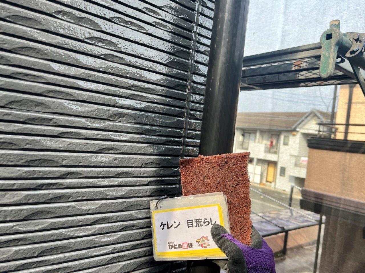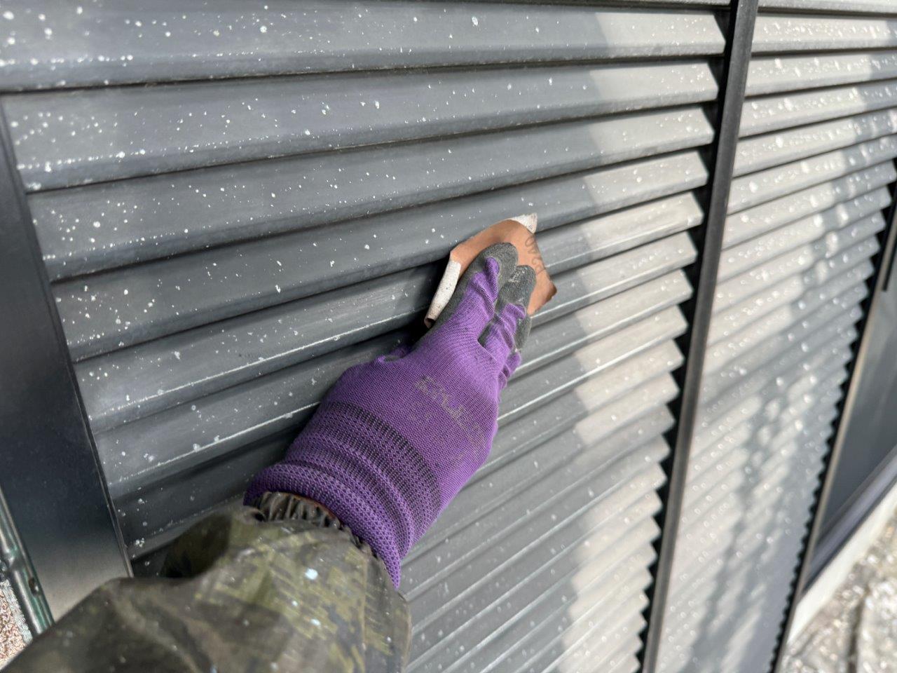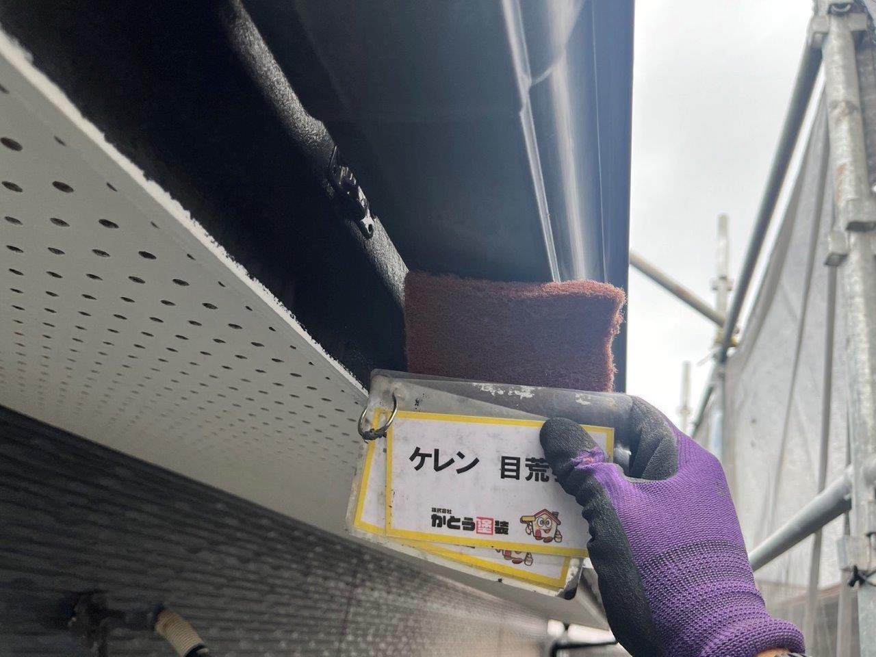 雨どいのケレン状況です。塗膜の食いつきをよくする目的があります。