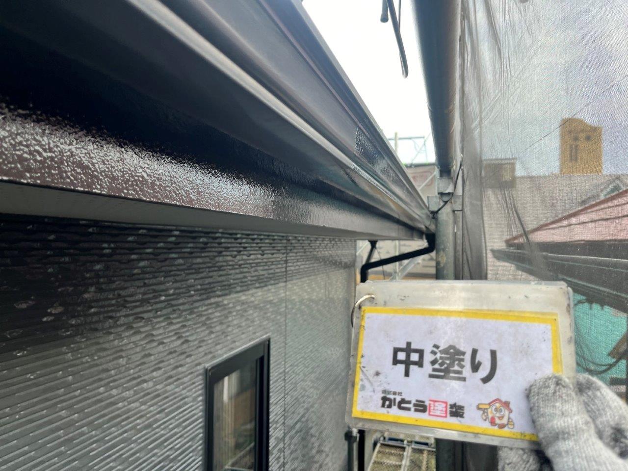 出窓の天端の中塗り状況です。