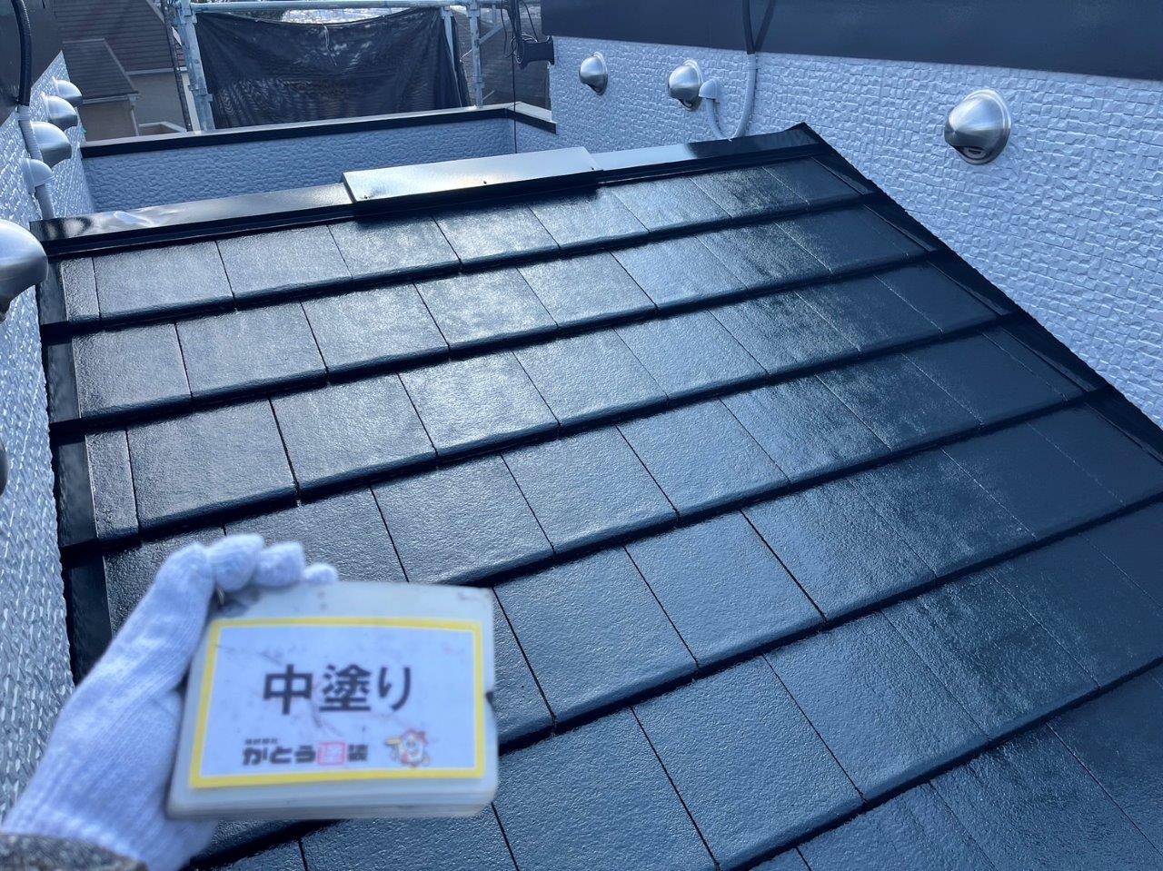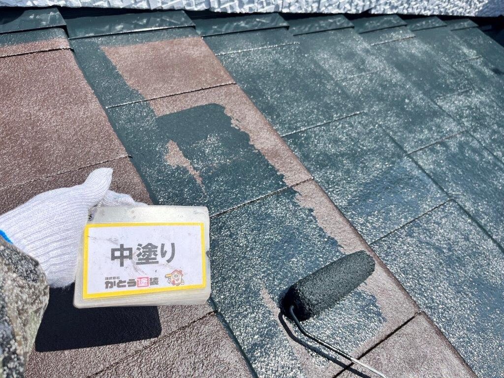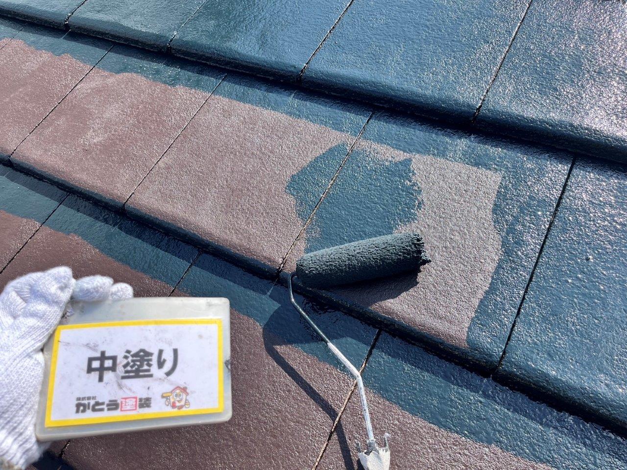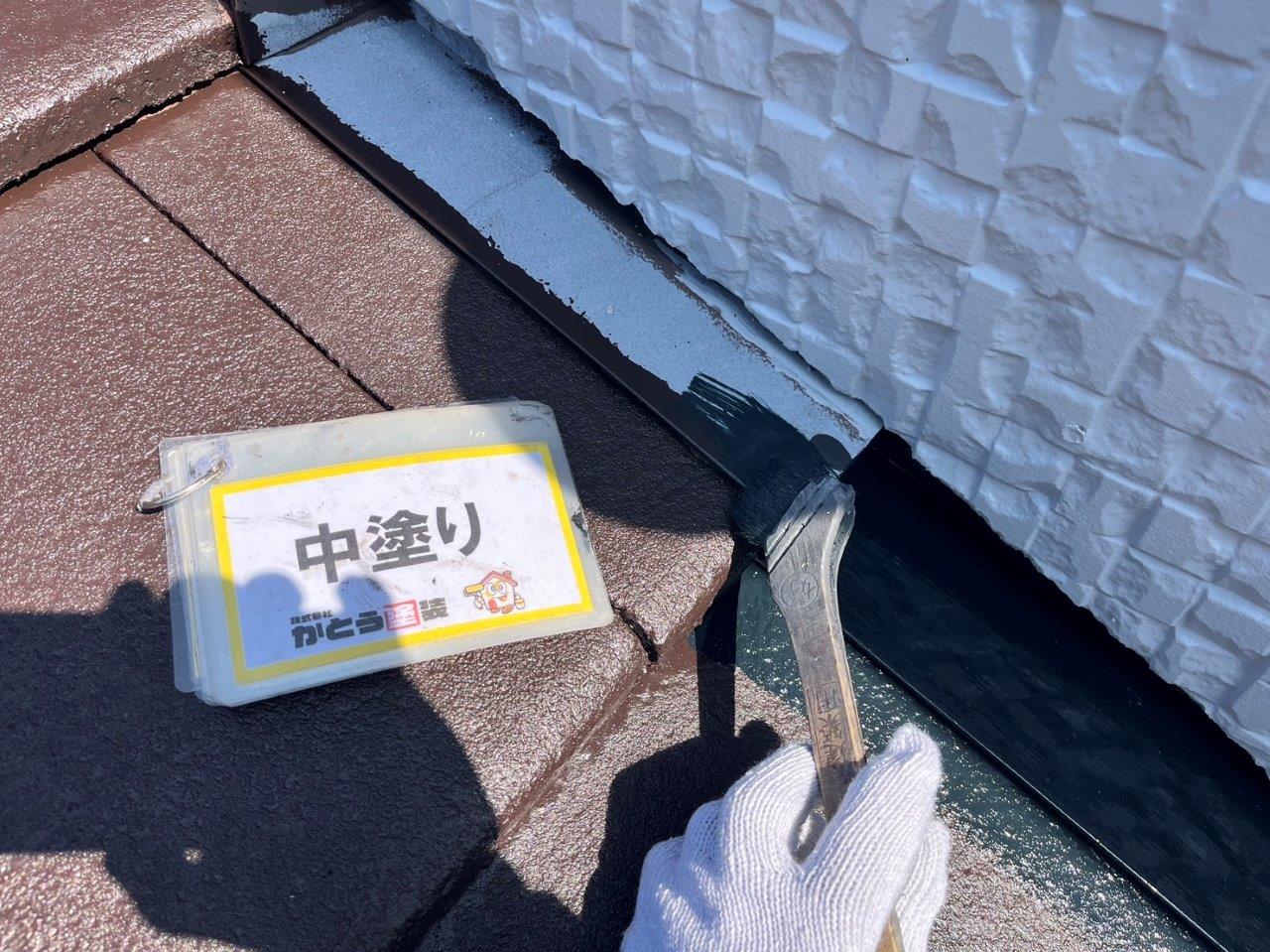 熊本市外壁塗装,屋根の中塗り 防水塗装をおこないました。