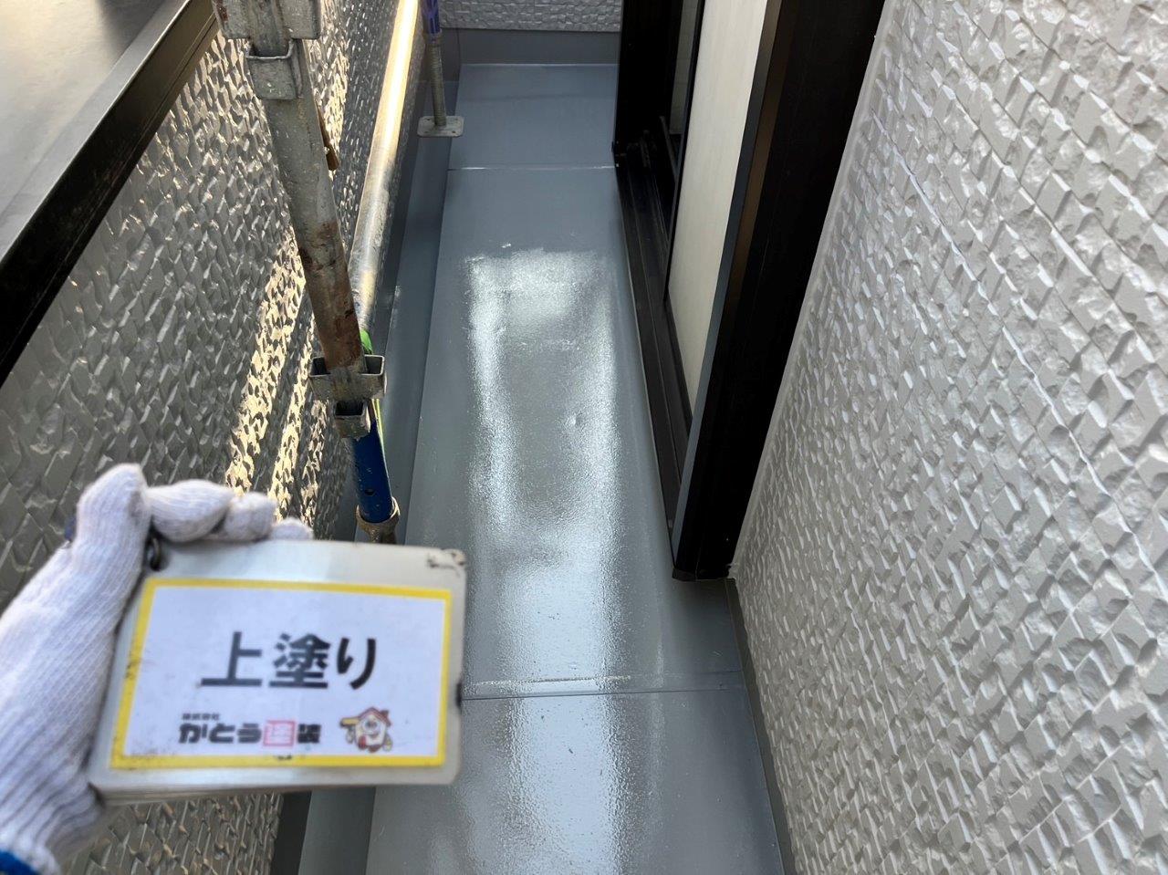 塗装工事をする際によくお見積りに防水塗装(バルコニーの床)が入っていない場合があります。防水の効果は10年ほどですので、なにも塗らないと防水層からやりかえないといけなくなるのでそうなるまえに塗装することをおすすめします。