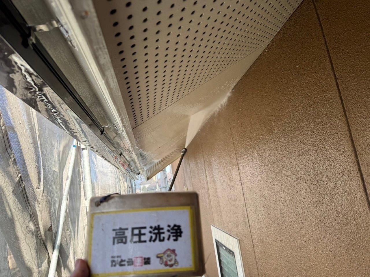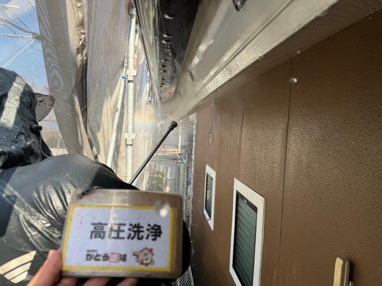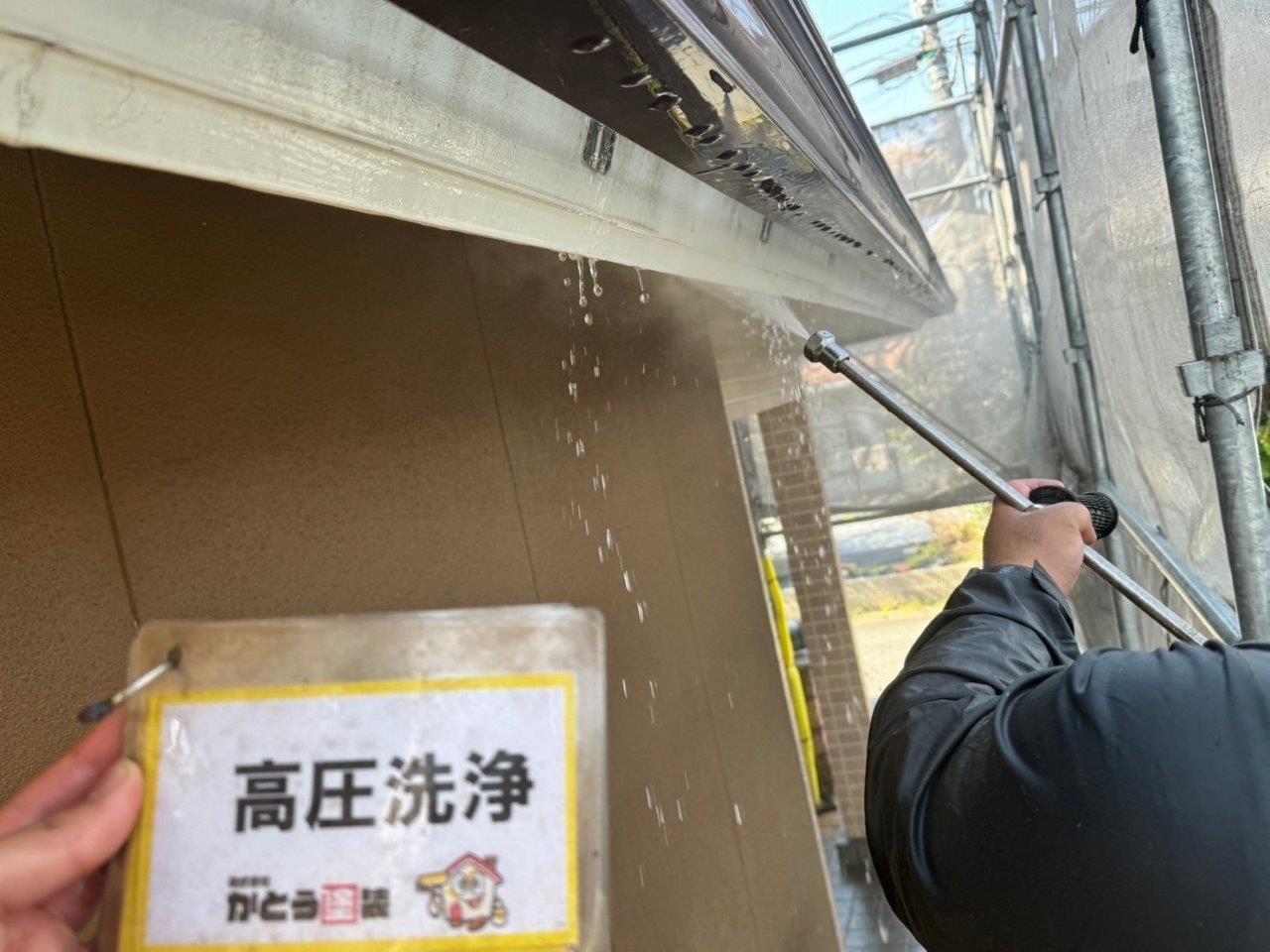 合志市須屋k様邸外壁塗装,高圧洗浄をおこない下地をきれいにしました。