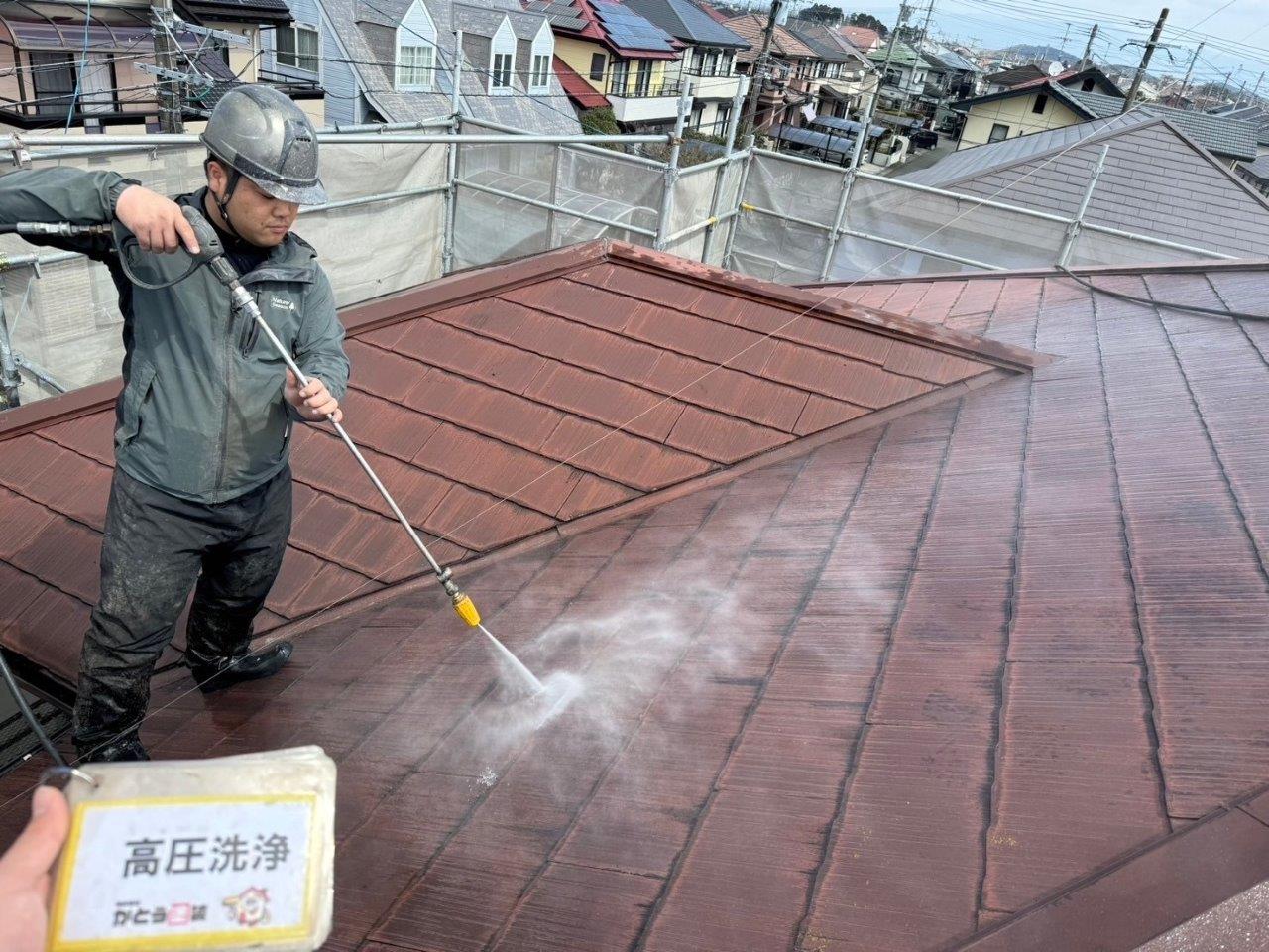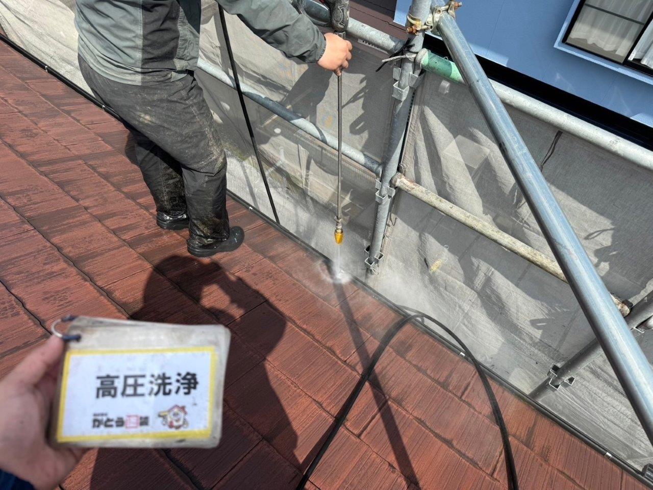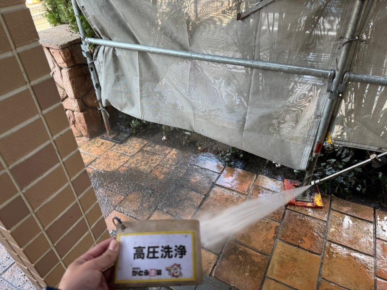 合志市須屋k様邸外壁塗装,高圧洗浄をおこない下地をきれいにしました。