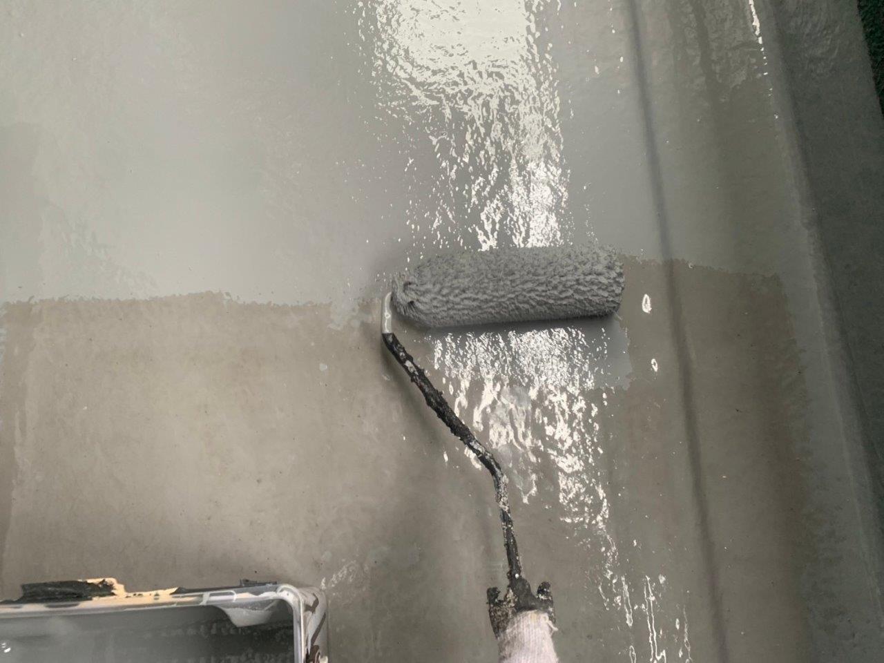 バルコニーの床の防水塗装の上塗り状況です