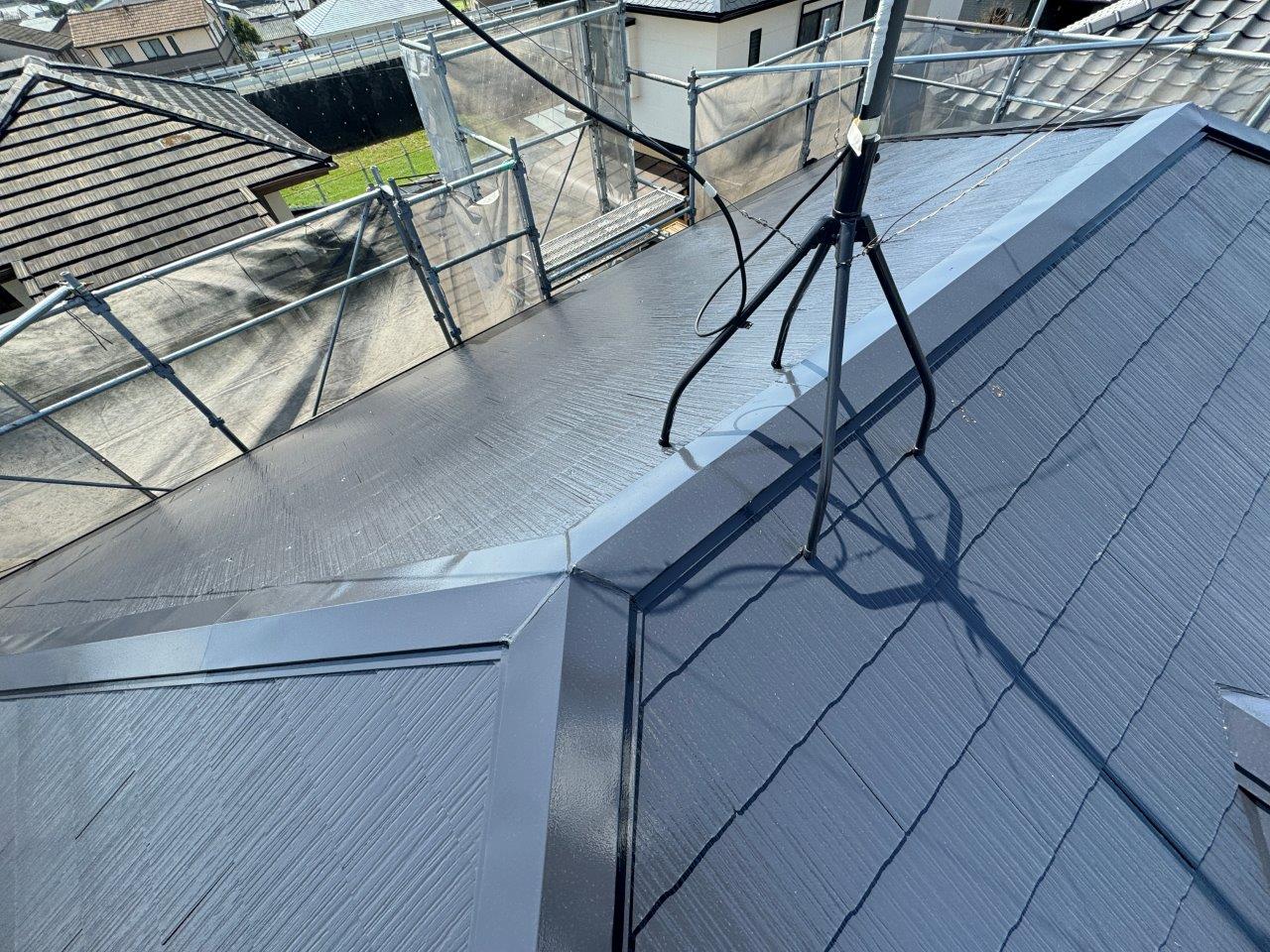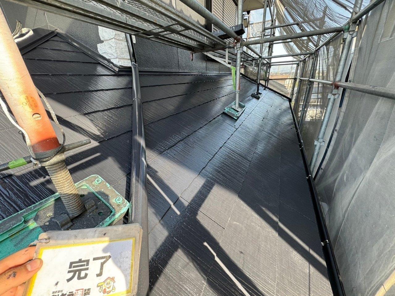 屋根塗装が完了しました、屋根がキラキラと煌めいています。