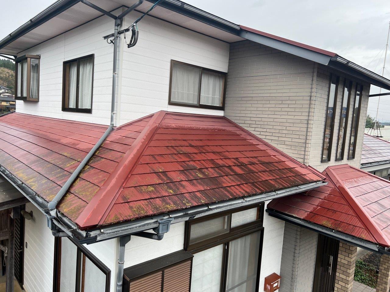 施工前のお写真です、屋根の汚れやコケ黒ずみなど全体的に色あせてみえます。