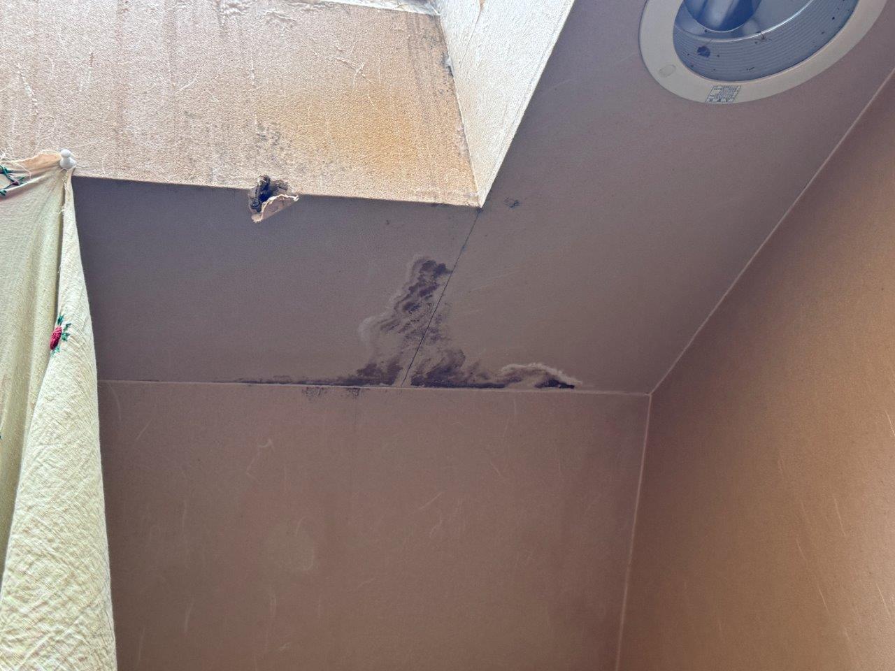 天窓の下側部分に雨水の侵入によって出来たシミがみられます。