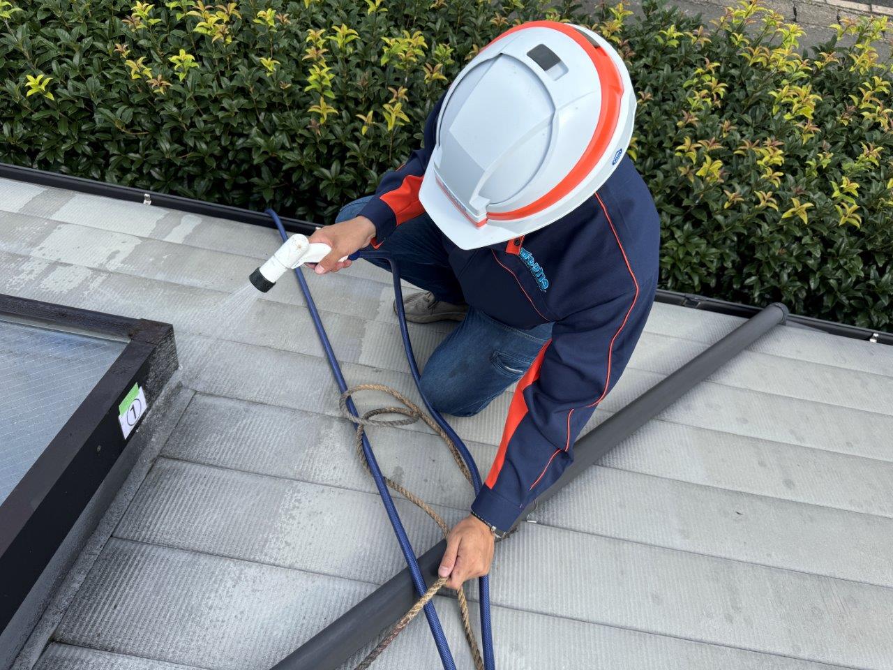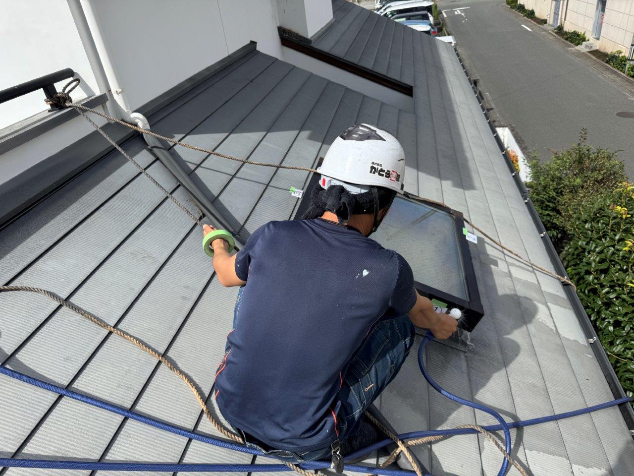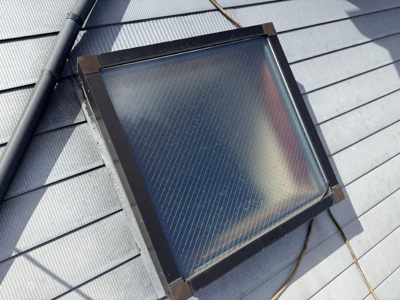 天窓を屋根に上って確認します。