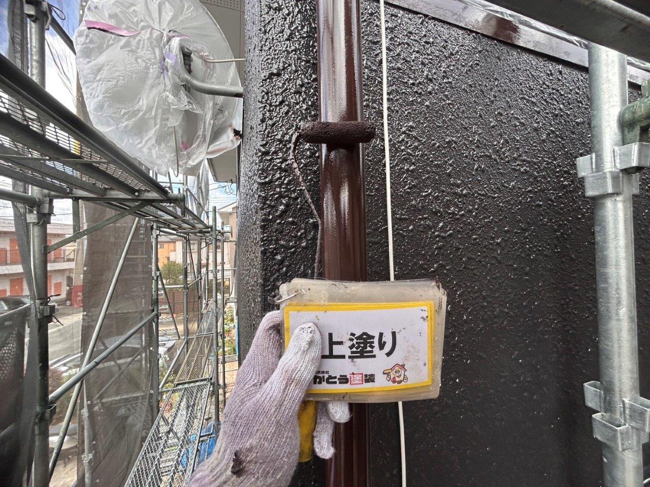 この箇所は雨風の影響を受けやすいためしっかりと膜厚を付けて塗装をおこないます