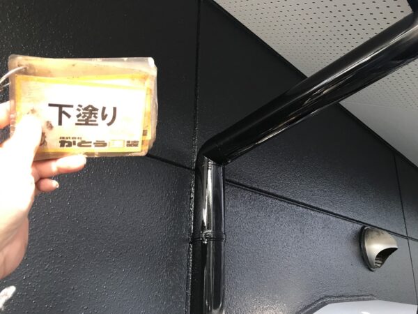 雨樋の下塗りの様子です。