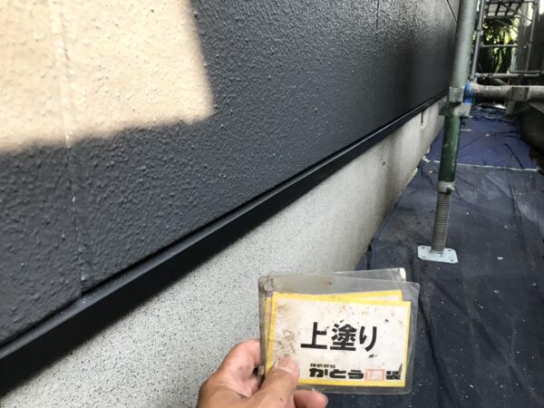 土台水切りの上塗りの様子です。