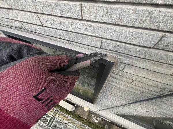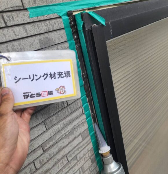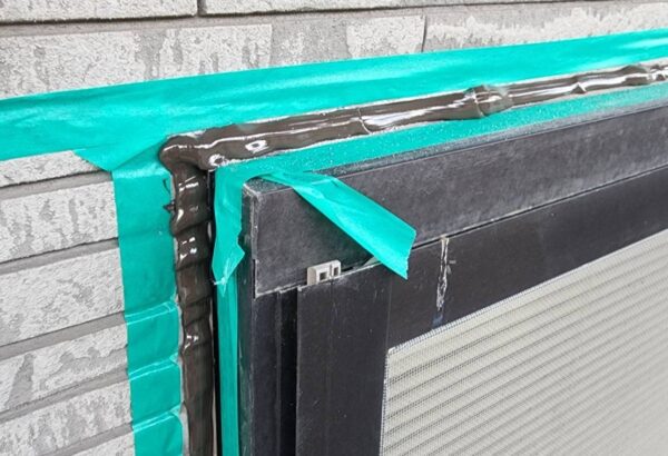 外壁や窓枠に合わせて濃いめのカラーのシーリング材を使用したので、
