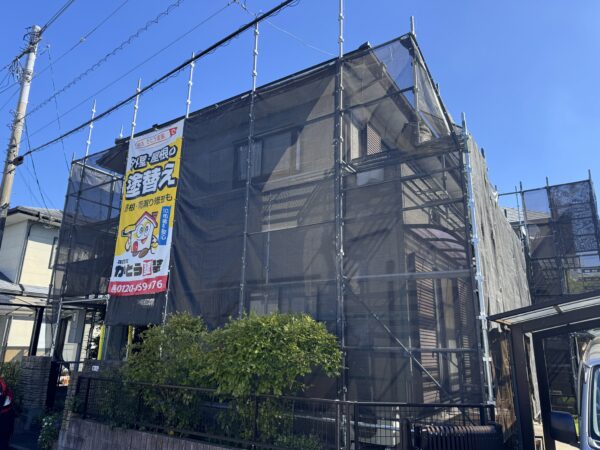 合志市K様邸外壁塗装,足場架設をしシーリング工事をおこないました