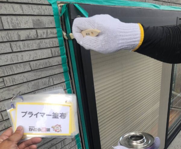 シーリング撤去後、養生しプライマーを塗布していきます。