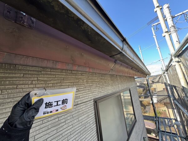 軒天は洗浄した箇所が汚れが落ち白さが戻り、綺麗になっているのが分かります。