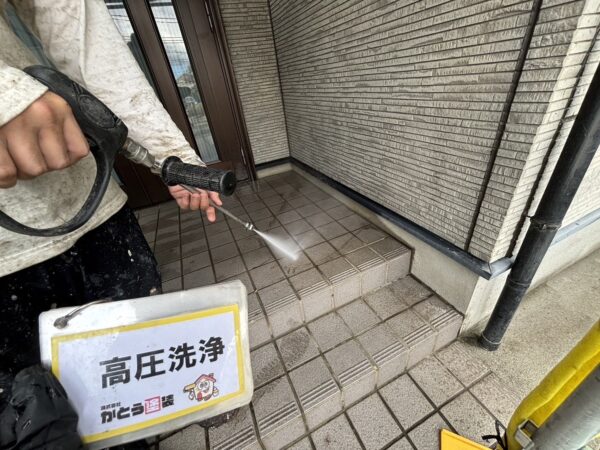 塗装をおこなわない玄関前や土間コンクリートも洗浄し、綺麗にしていきます。