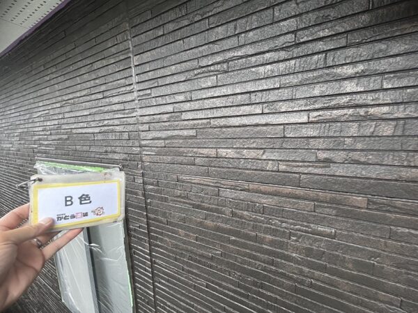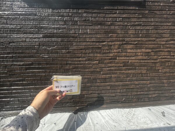 外壁を塗りつぶさず、オシャレに仕上がるWB多彩仕上げ工法にて施工していきます。