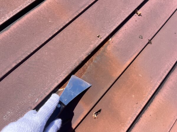 サビをそのままにしておくと、サビが進行しやがて屋根に穴が開き、雨水が建物内部に侵入する恐れがあります。