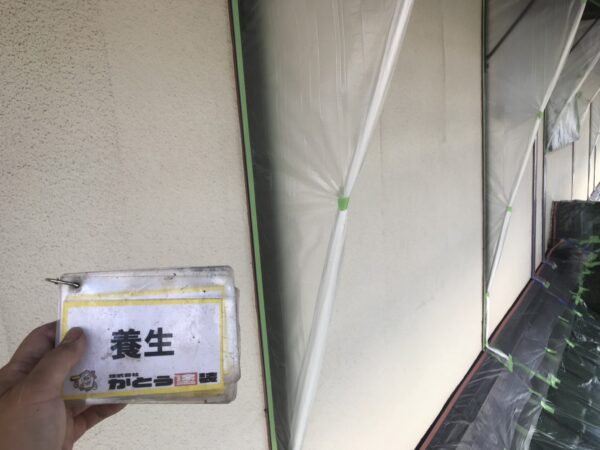 熊本市北区N様邸外壁塗装,養生し外壁の塗装をおこないました