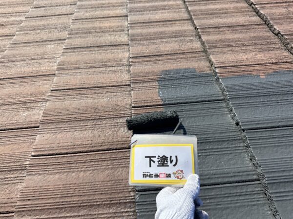 宇城市K様邸外壁塗装,モニエル瓦屋根の下塗りをおこないました