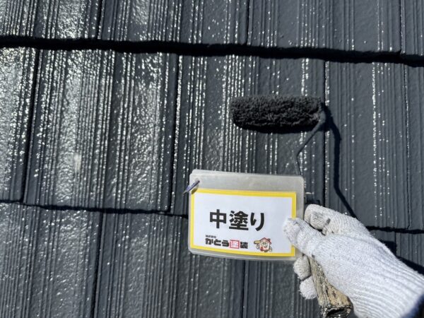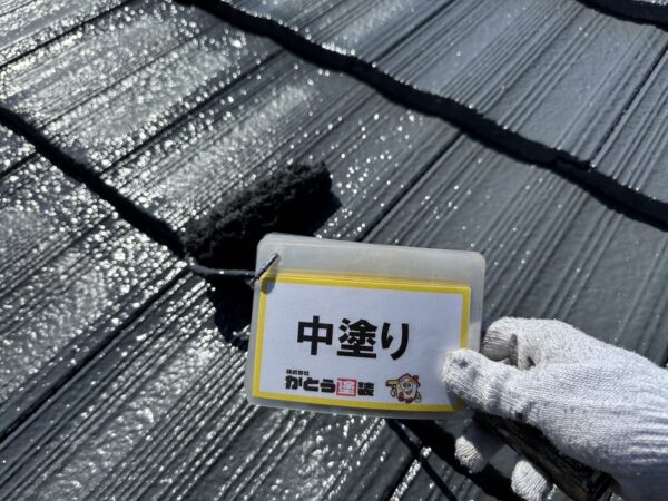 屋根の中塗りの様子です。