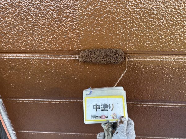 下塗り同様、塗り残しがないよう丁寧に施工します。