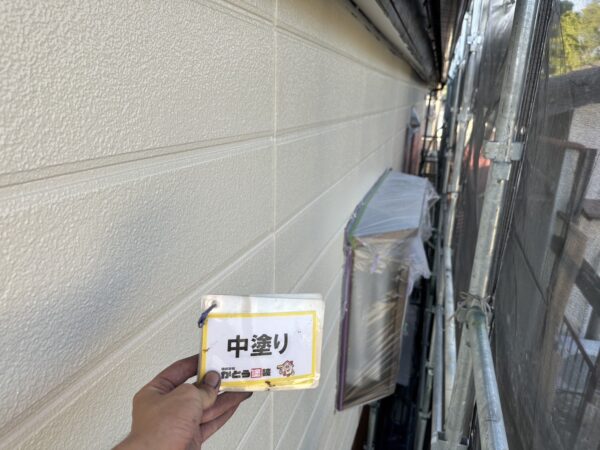 外壁の下塗り、中塗りの様子です。